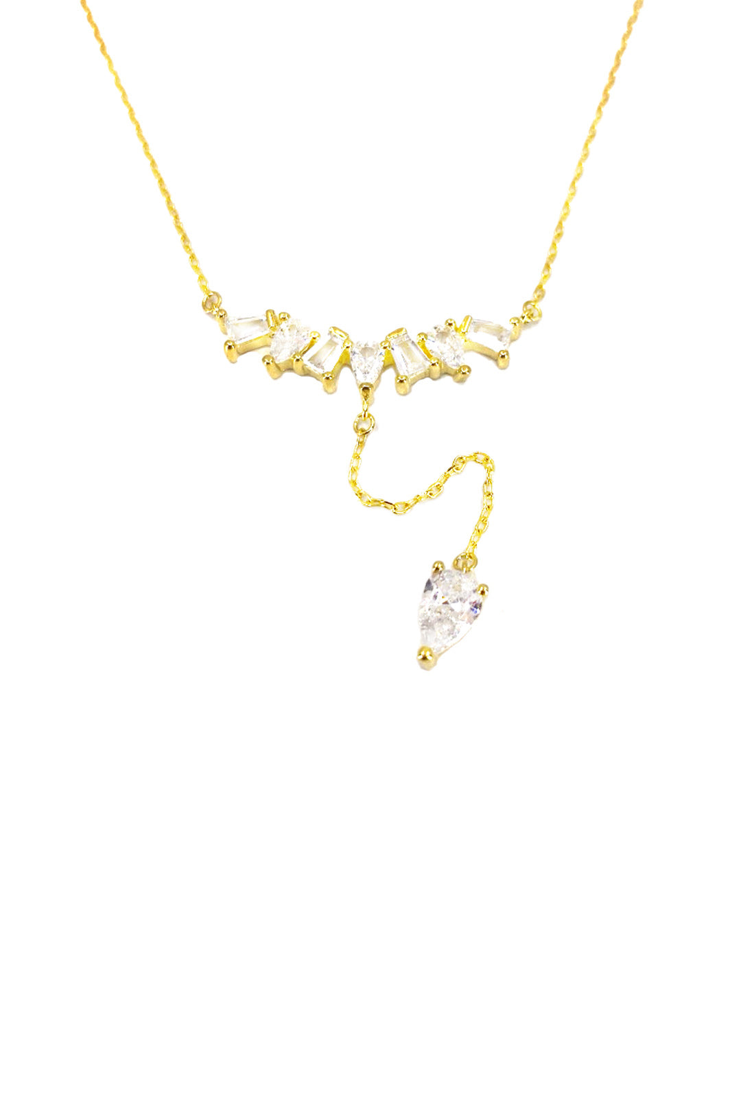 Damla Sallantılı Dağınık Taşlı Gümüş Y Kolye