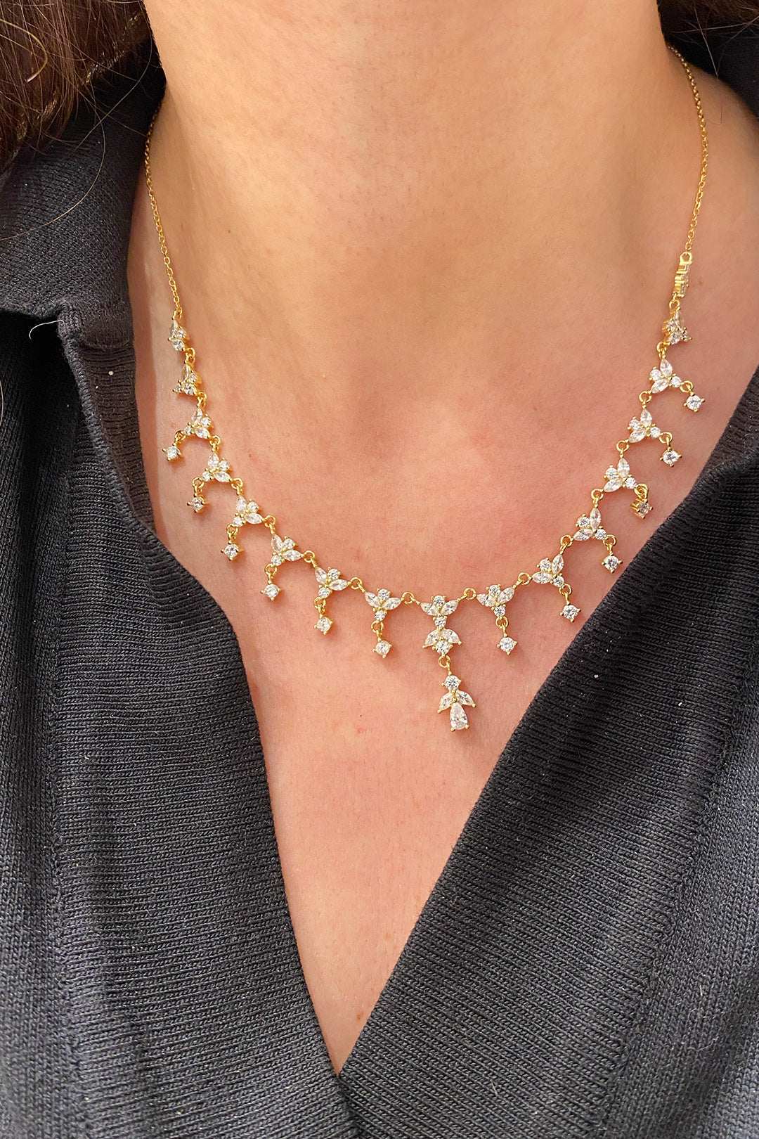 Damla Sallantılı Parıltılı Lotus Gümüş Kolye