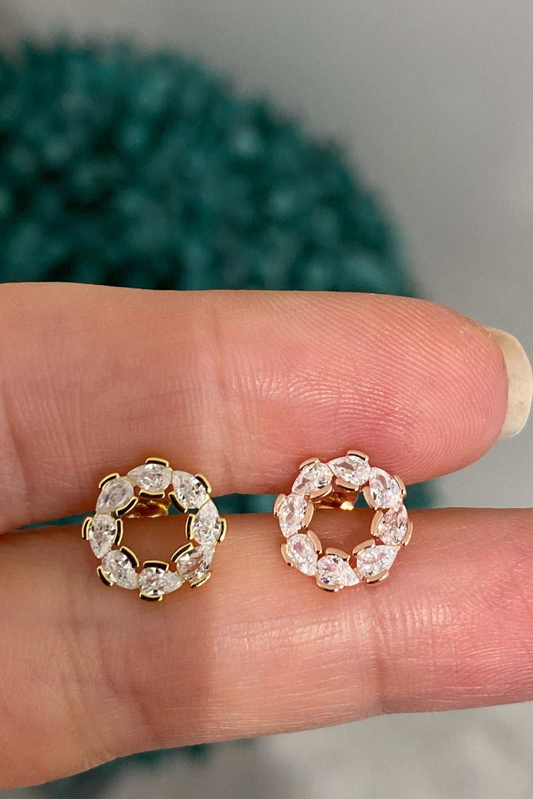 Damla Sıralı Çember Gümüş Çivili Küpe