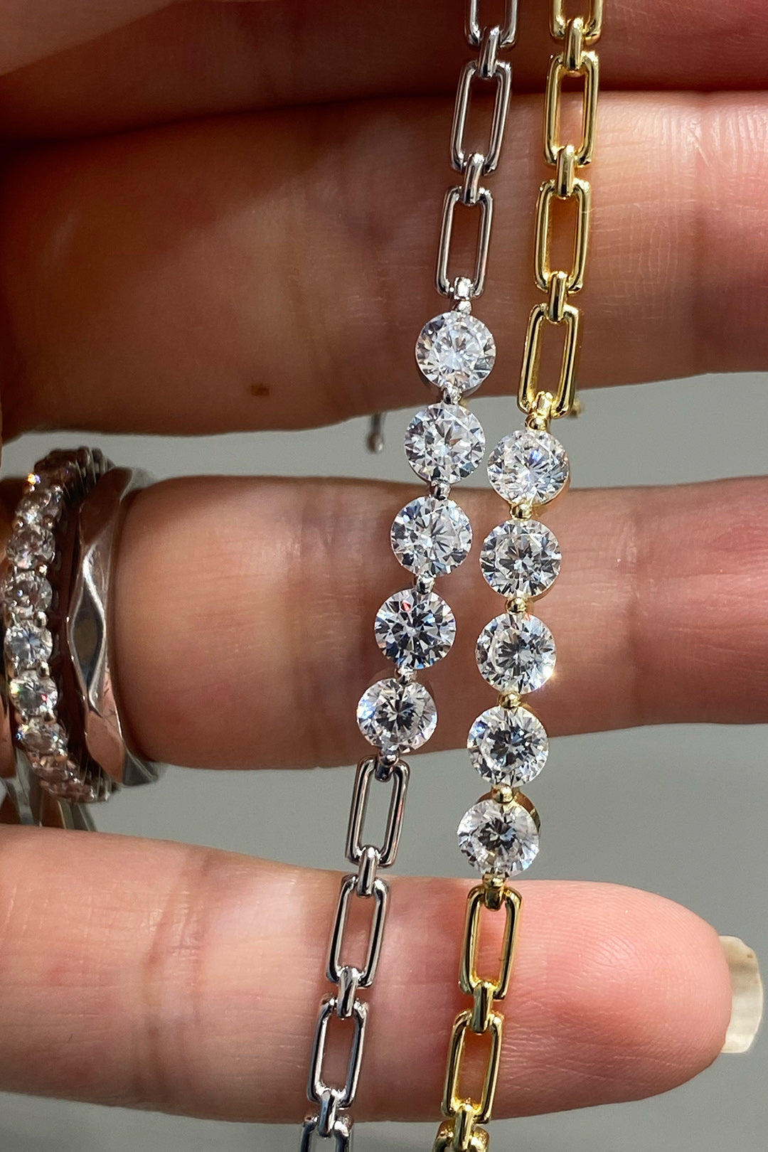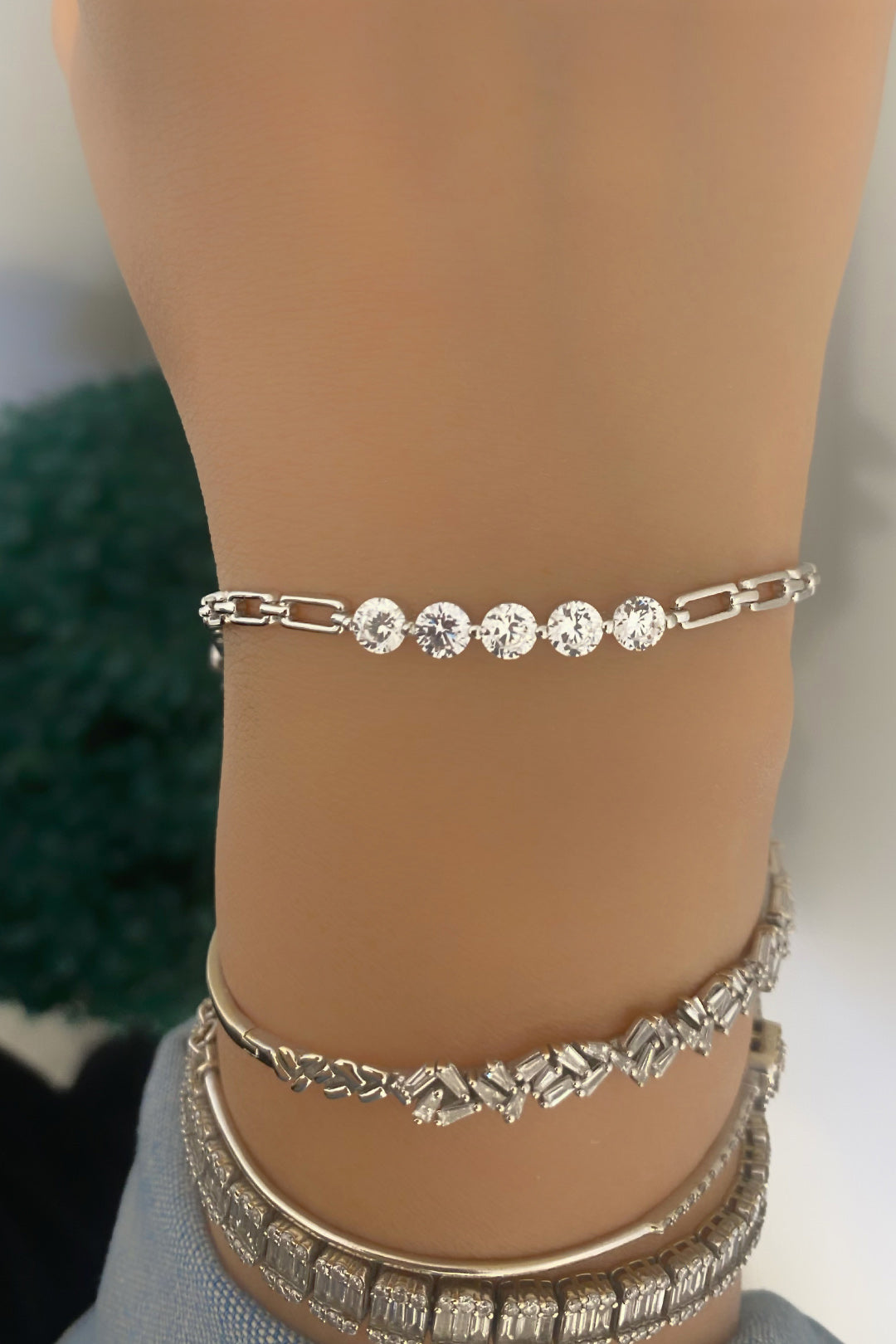 Dikdörtgen Zincir Beş Taşlı Gümüş Bileklik