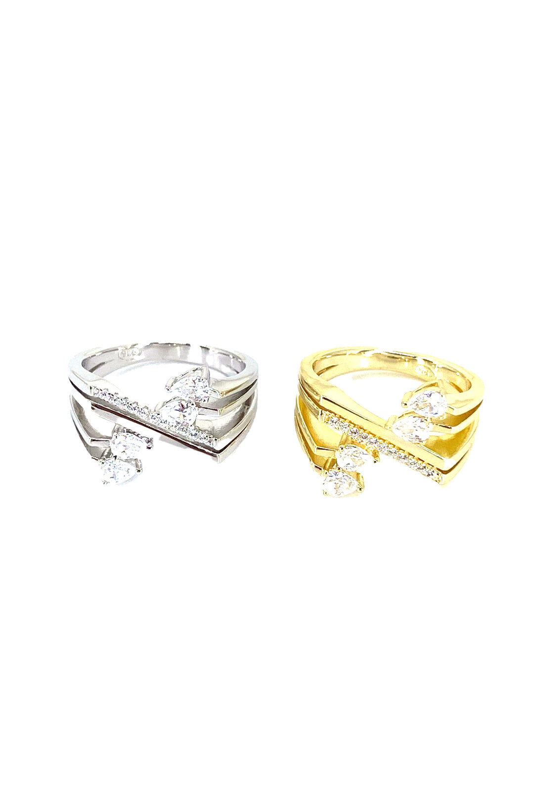 Dört Damla Ve Çapraz Detay Gümüş Yüzük