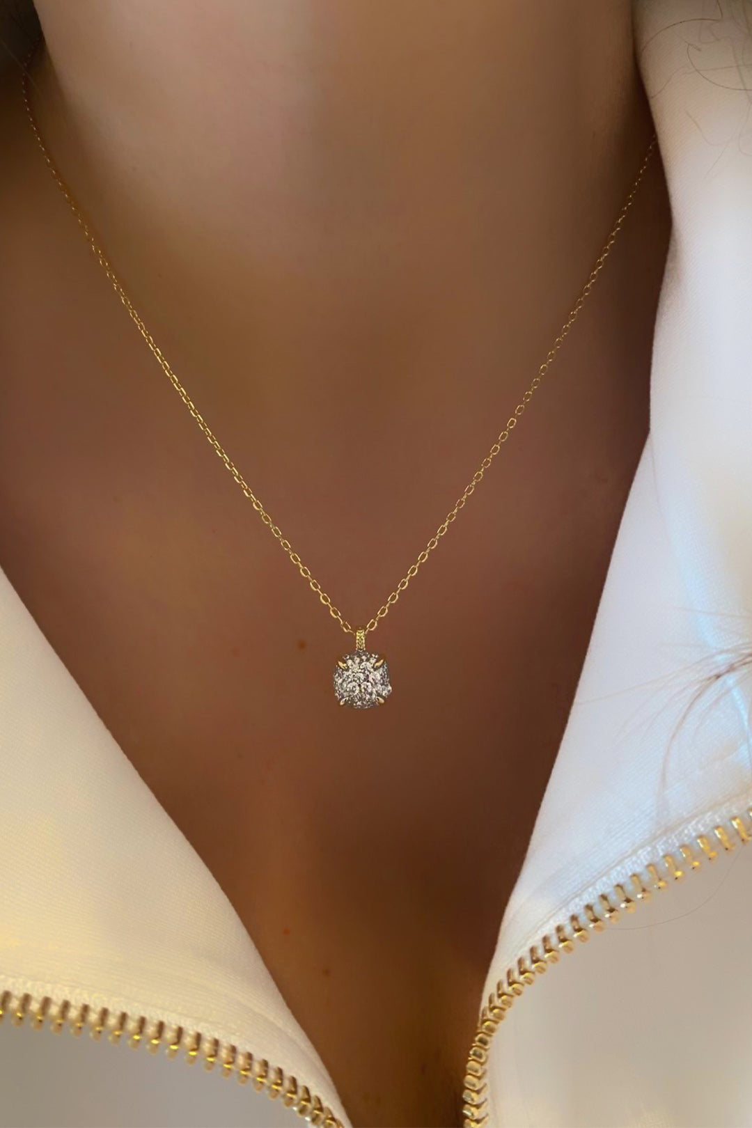 Dört Tırnaklı Bomby Taşlı Kare Gümüş Kolye