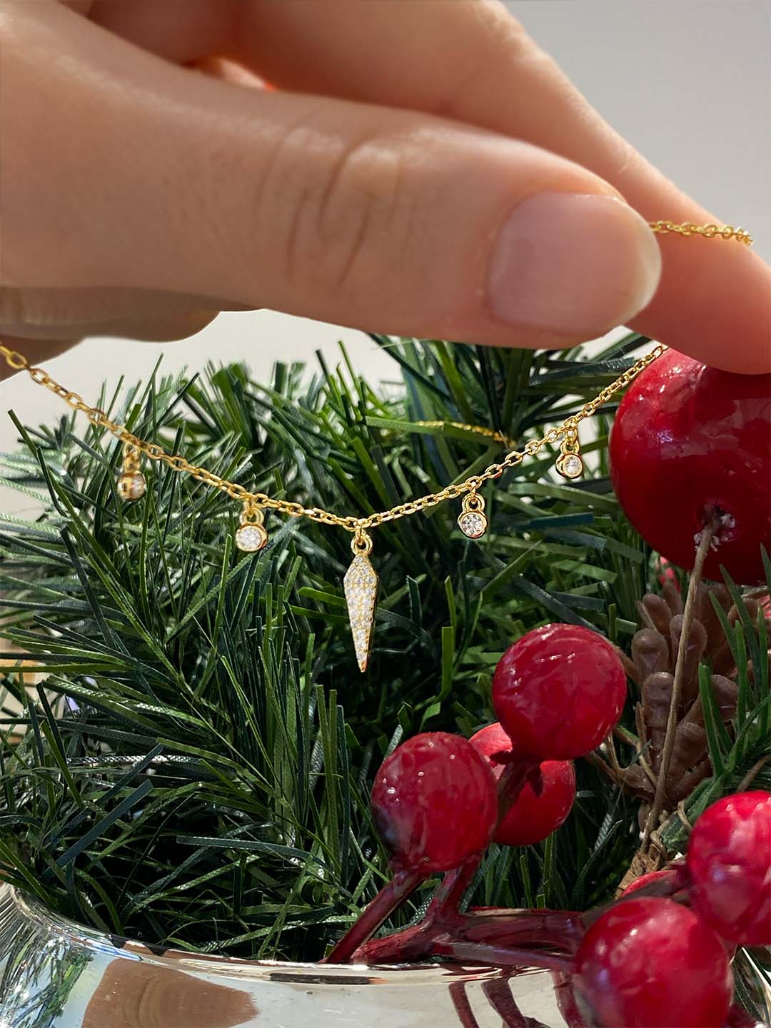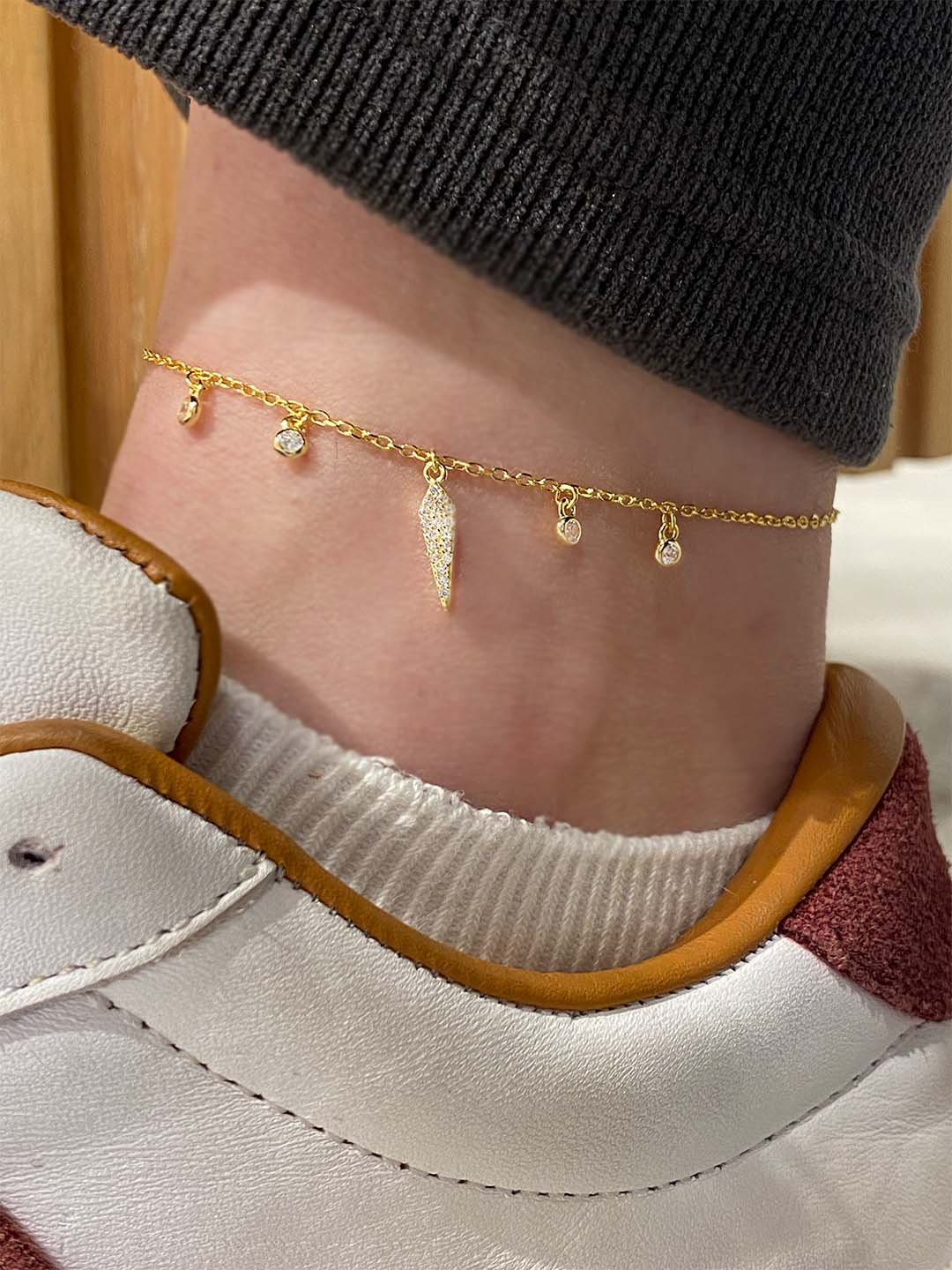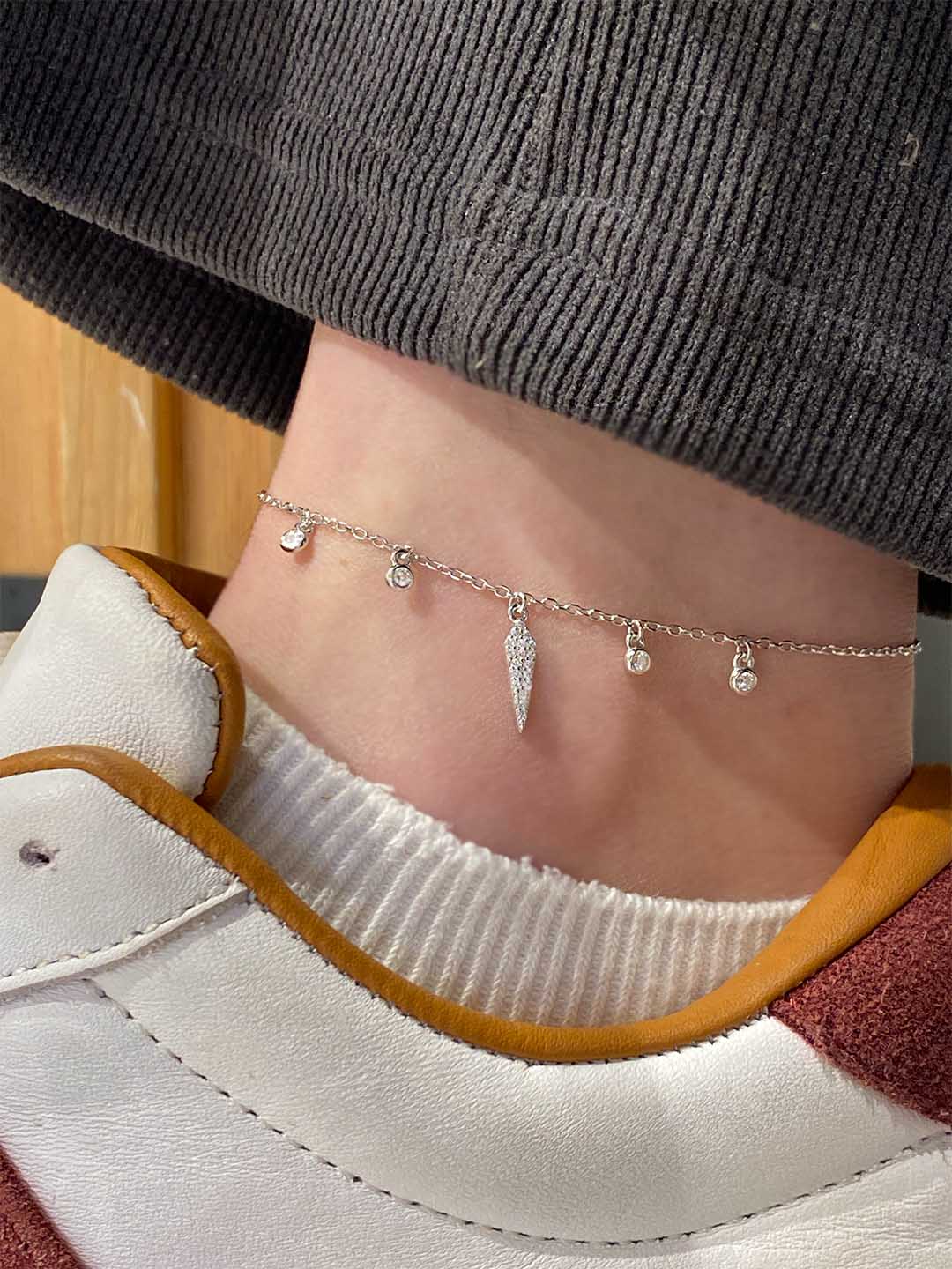 Dört Tohum Ve Taşlı Karo Sallantılı Gümüş Halhal