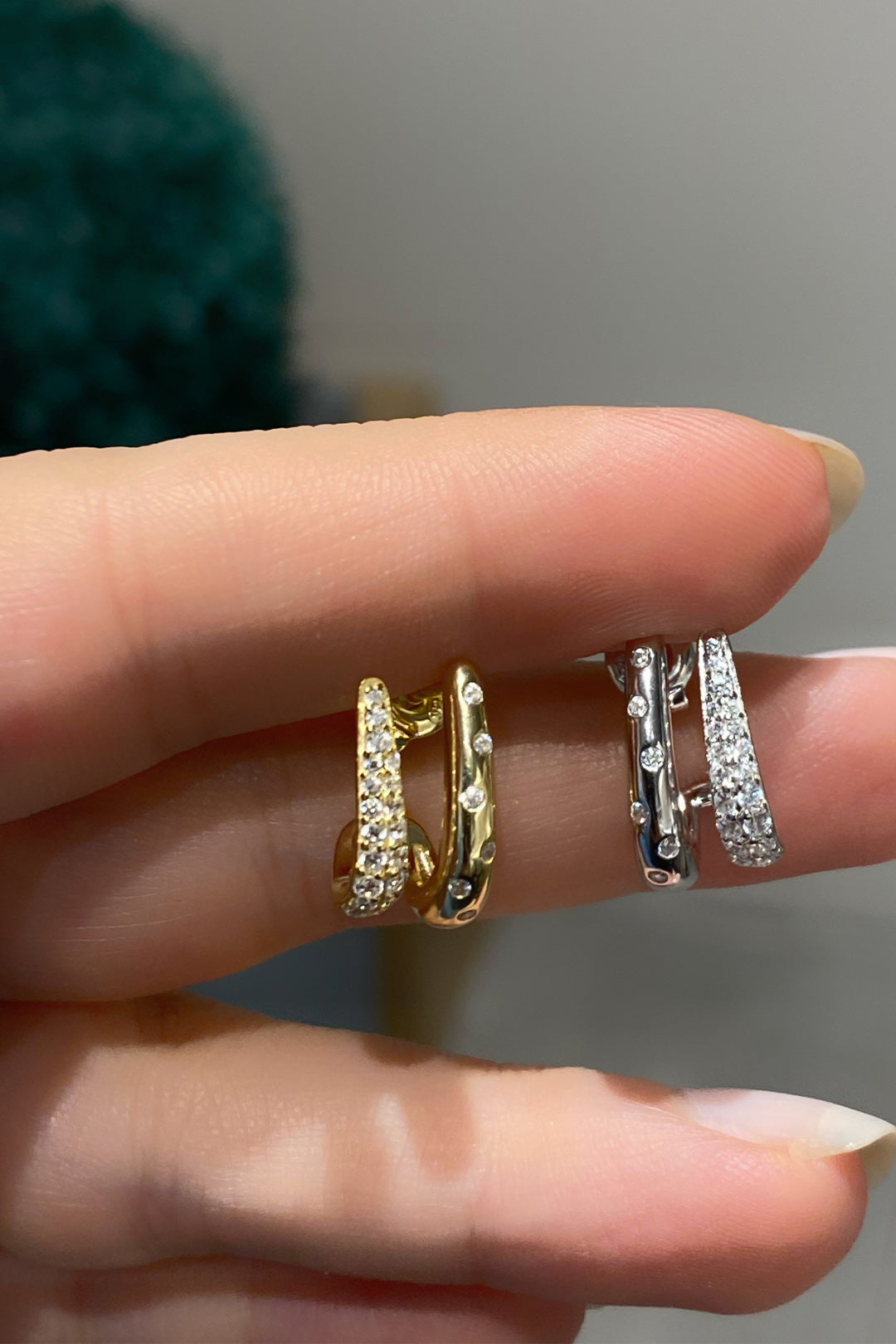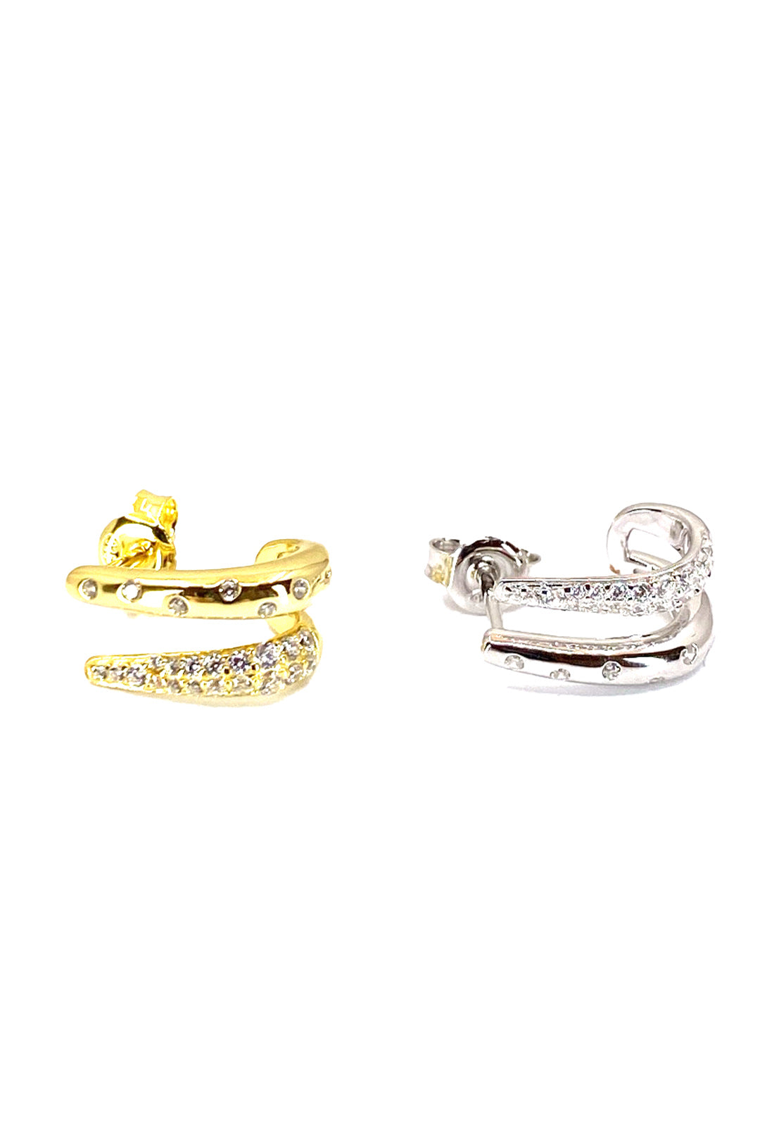Gömülü Ve Taşlı İki Sıra Gümüş Askı Küpe