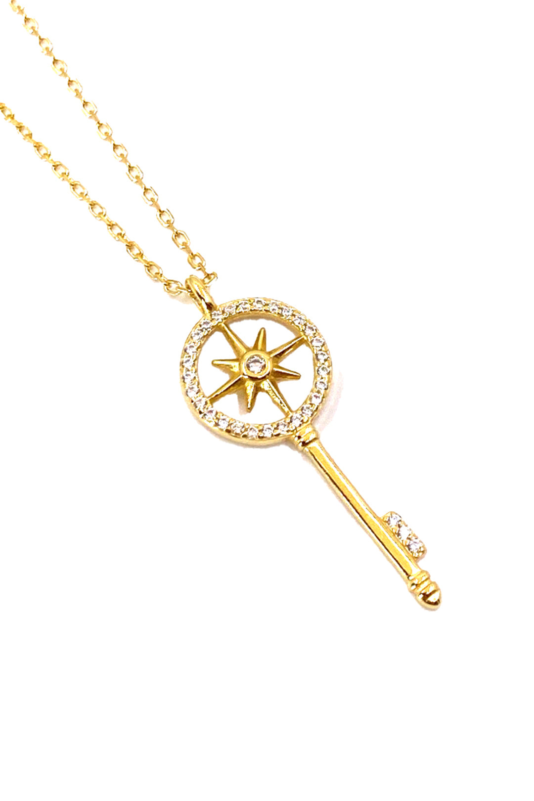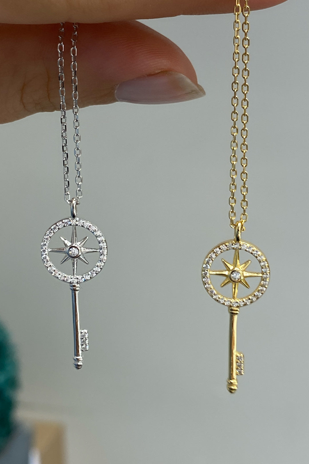 İçi Kuzeyyıldızı Desen Taşlı Anahtar Gümüş Kolye