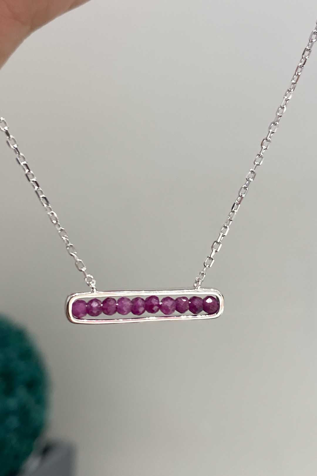 İçi Ruby Kristal Dikdörtgen Gümüş Kolye