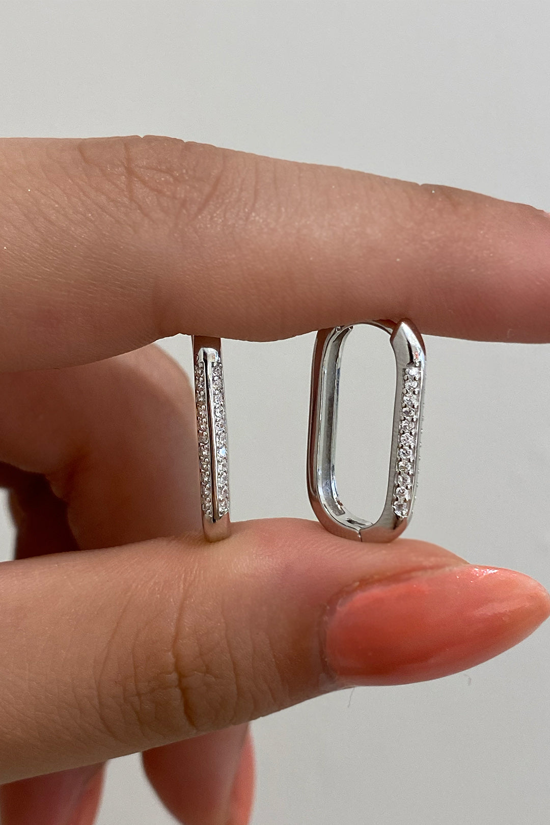 İki Sıra Taşlı Dikdörtgen Gümüş Küpe