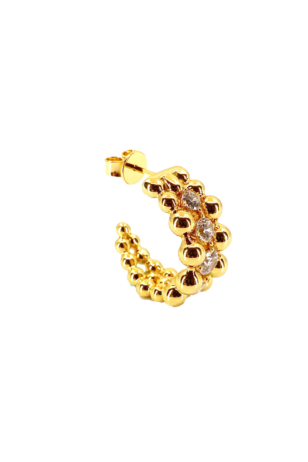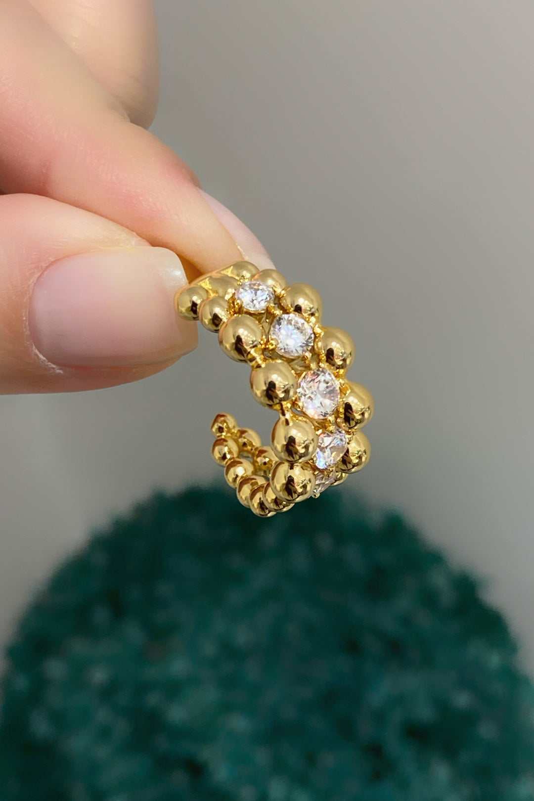 İki Sıra Top Ve Tek Sıra Taş Sıralı Açık Halka Küpe