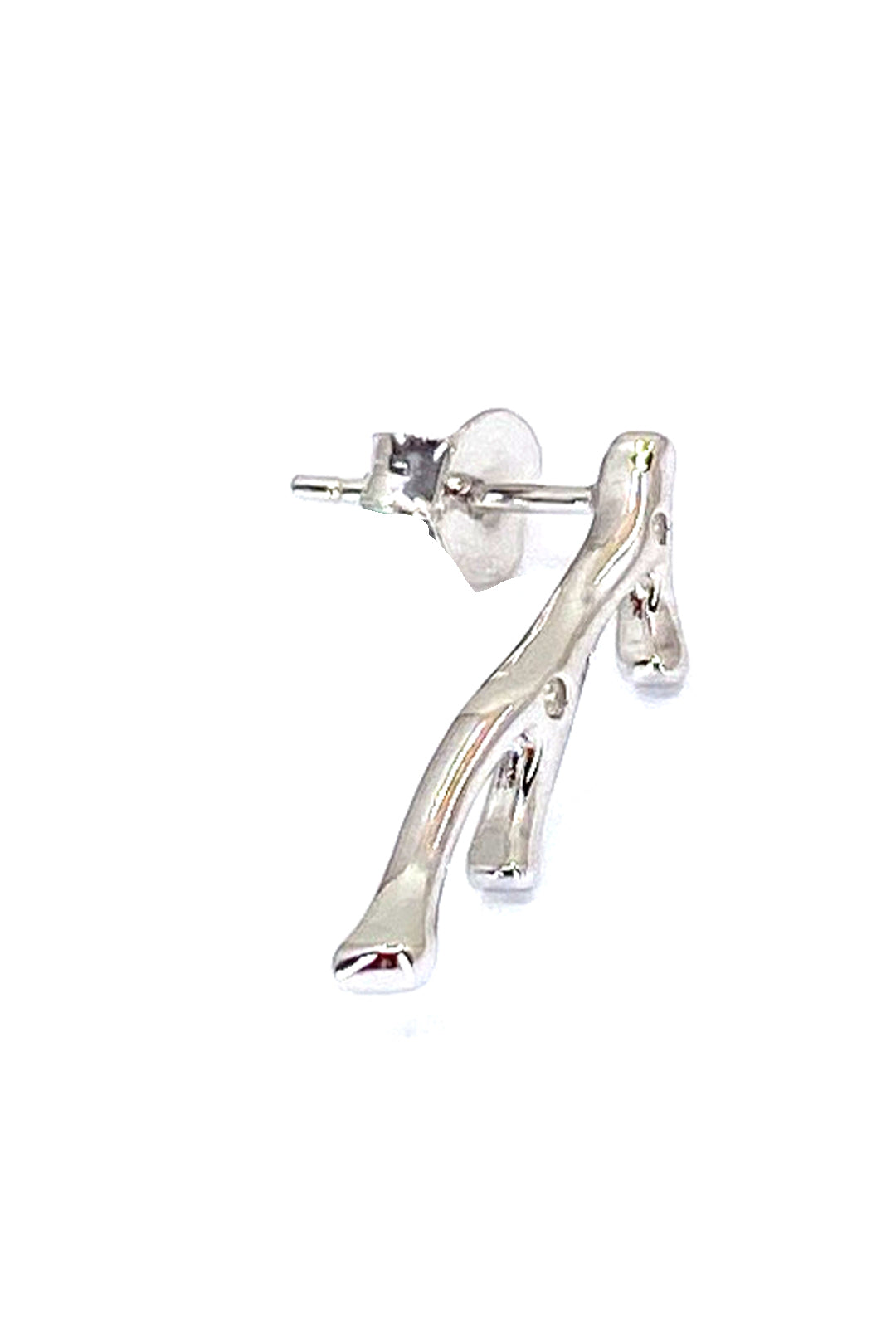 İki Taş Detay Dal Gümüş Çivili Küpe