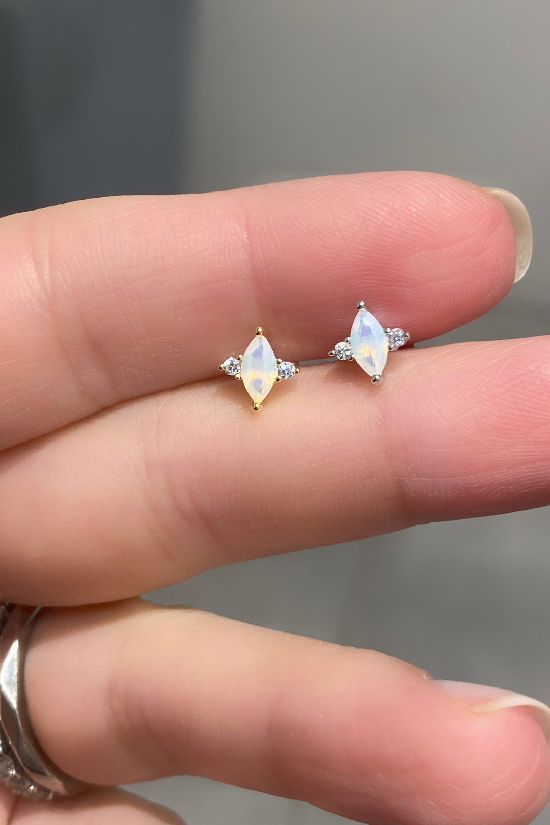 İki Tektaş Dikey Opal Markiz Gümüş Çivili Küpe