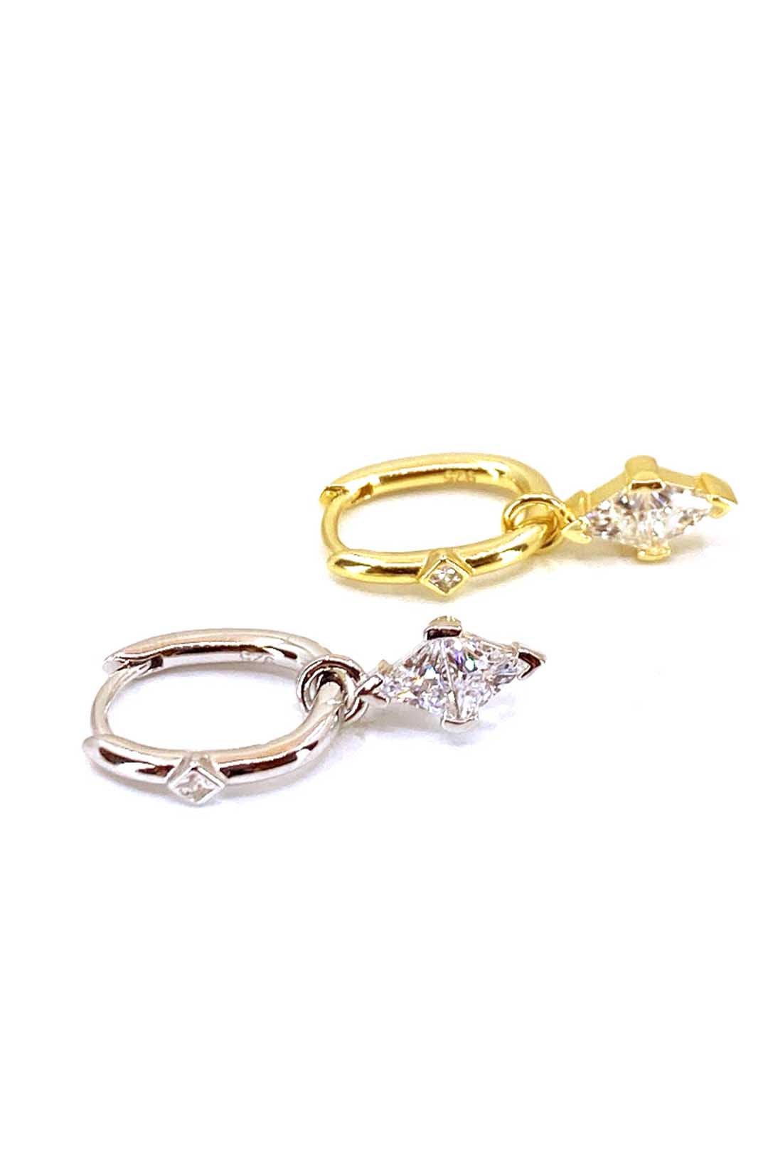 İki Üçgen Karo Oval Gümüş Küpe