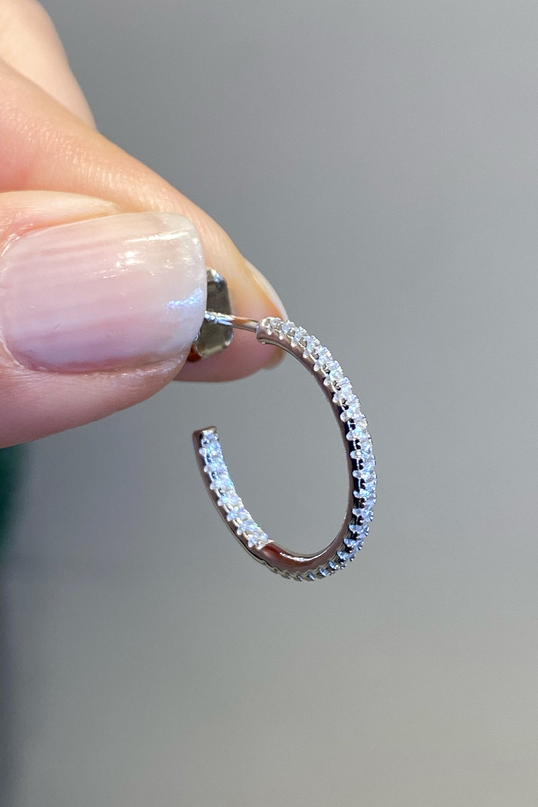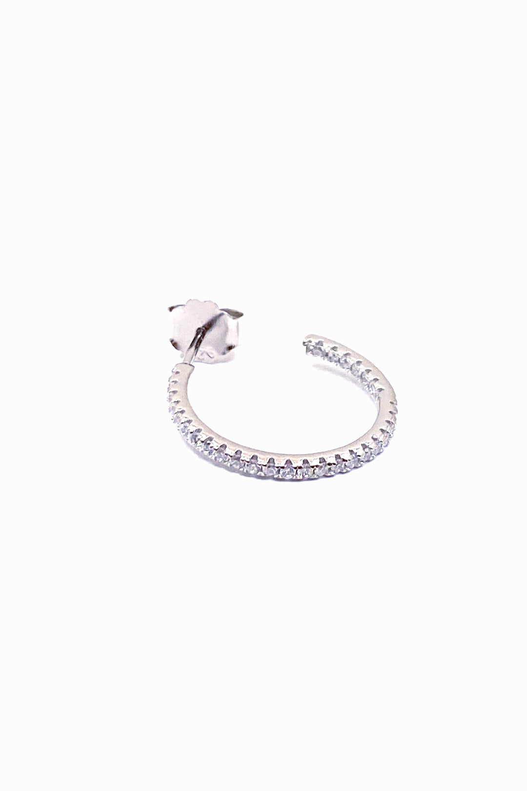 İnce Tek Sıra Taşlı Gümüş Açık Halka Küpe