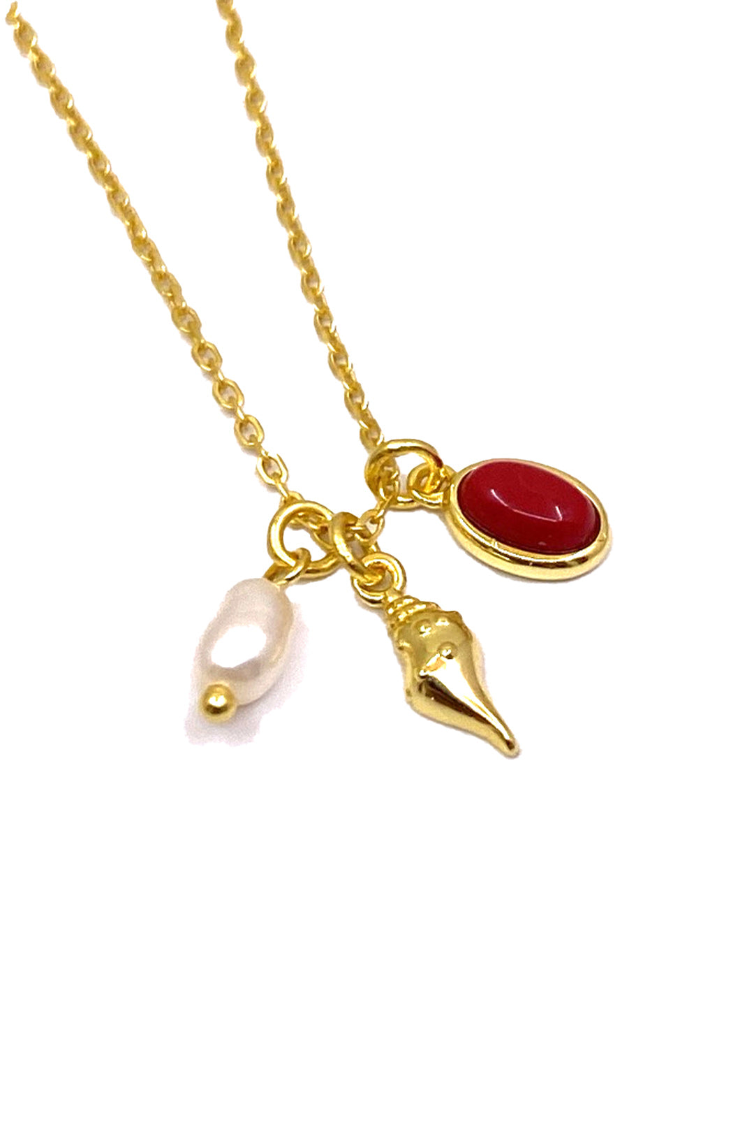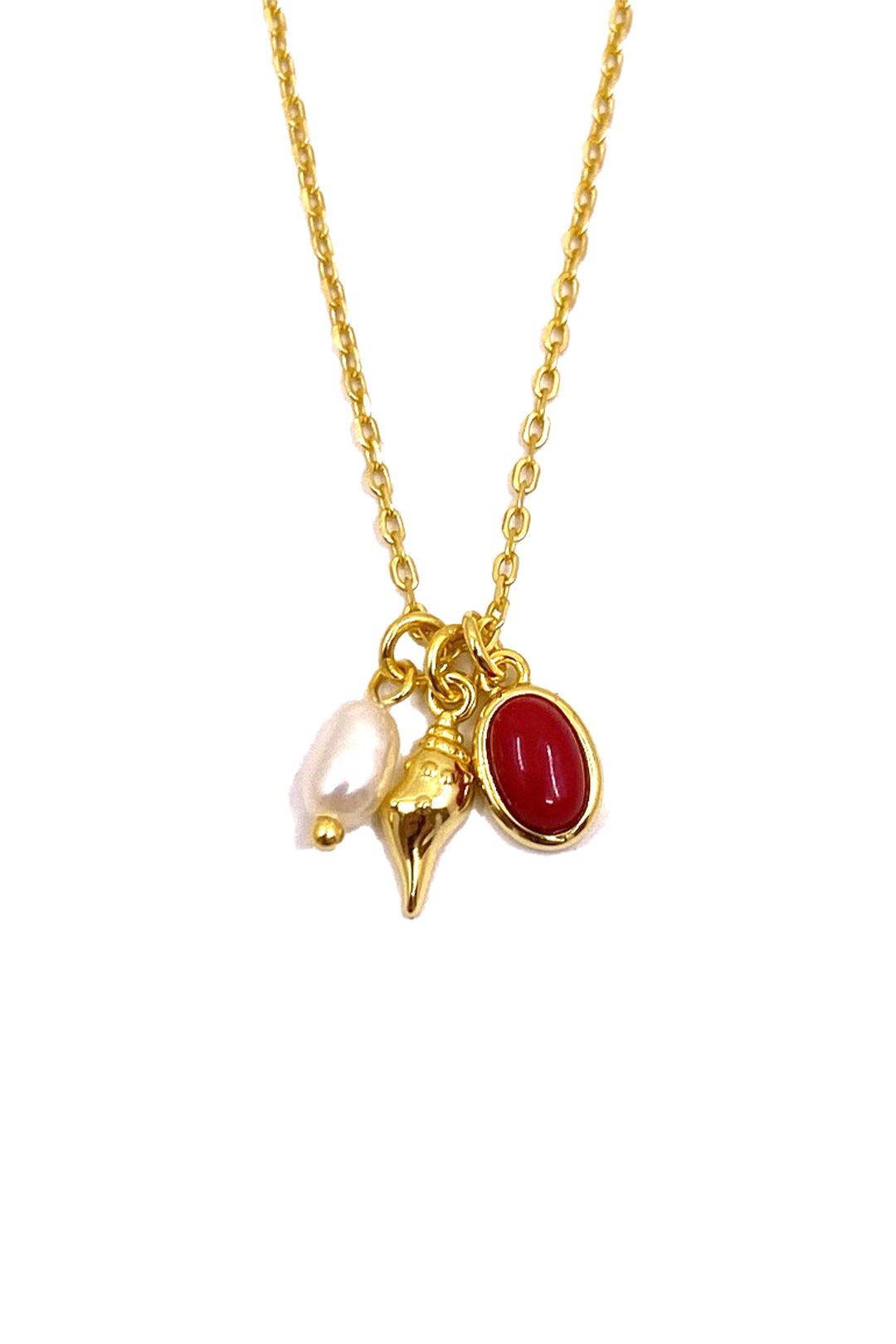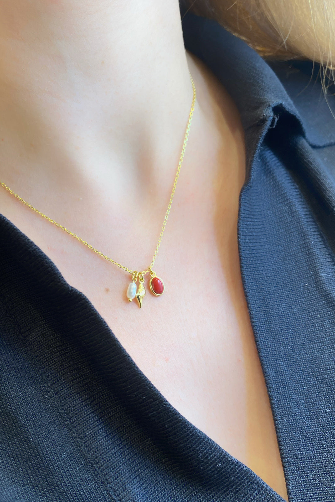 İnci Denizkabuğu ve Mercan Gümüş Kolye