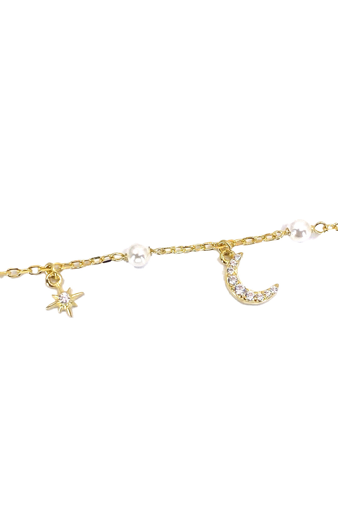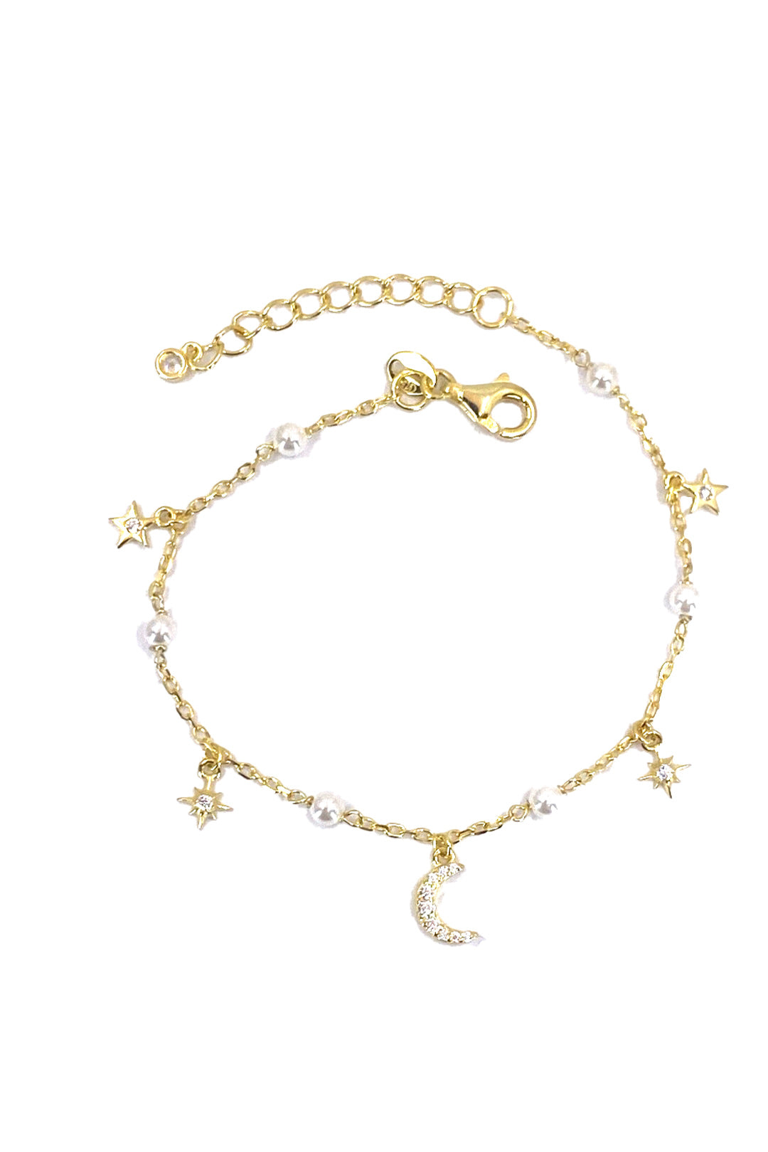 İnci Detay Yıldız Kutupyıldızı Ay Gümüş Bileklik