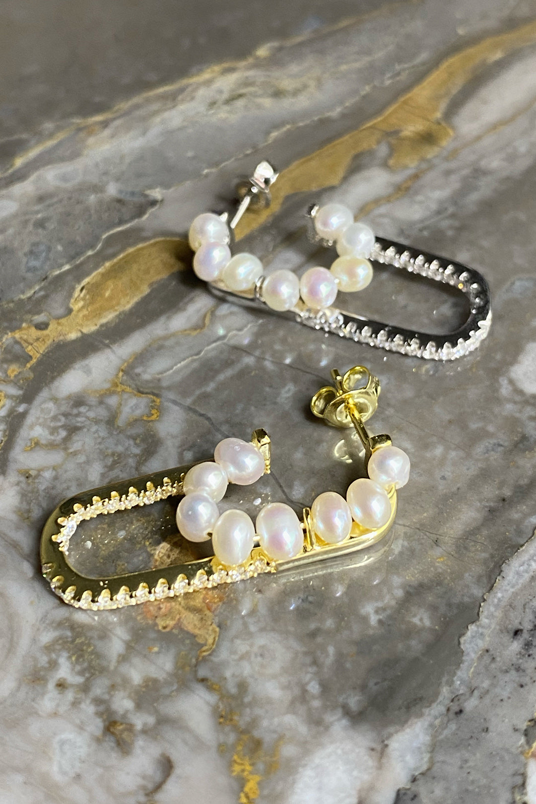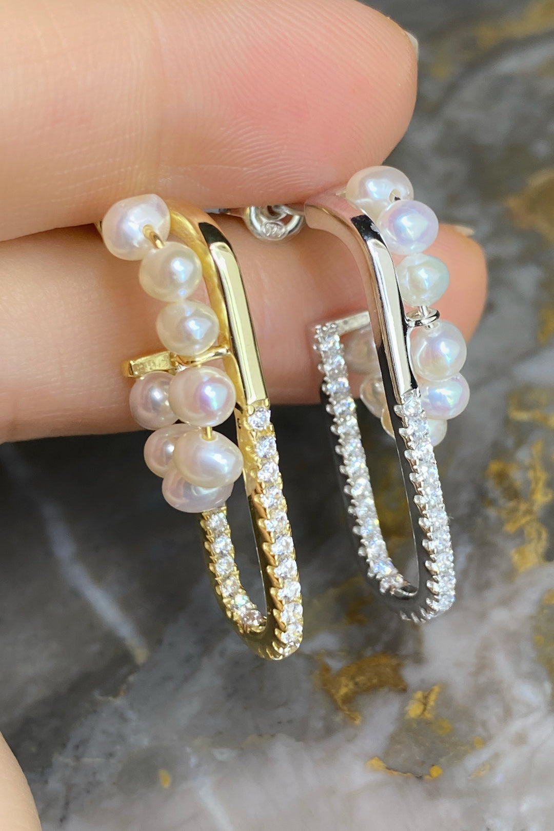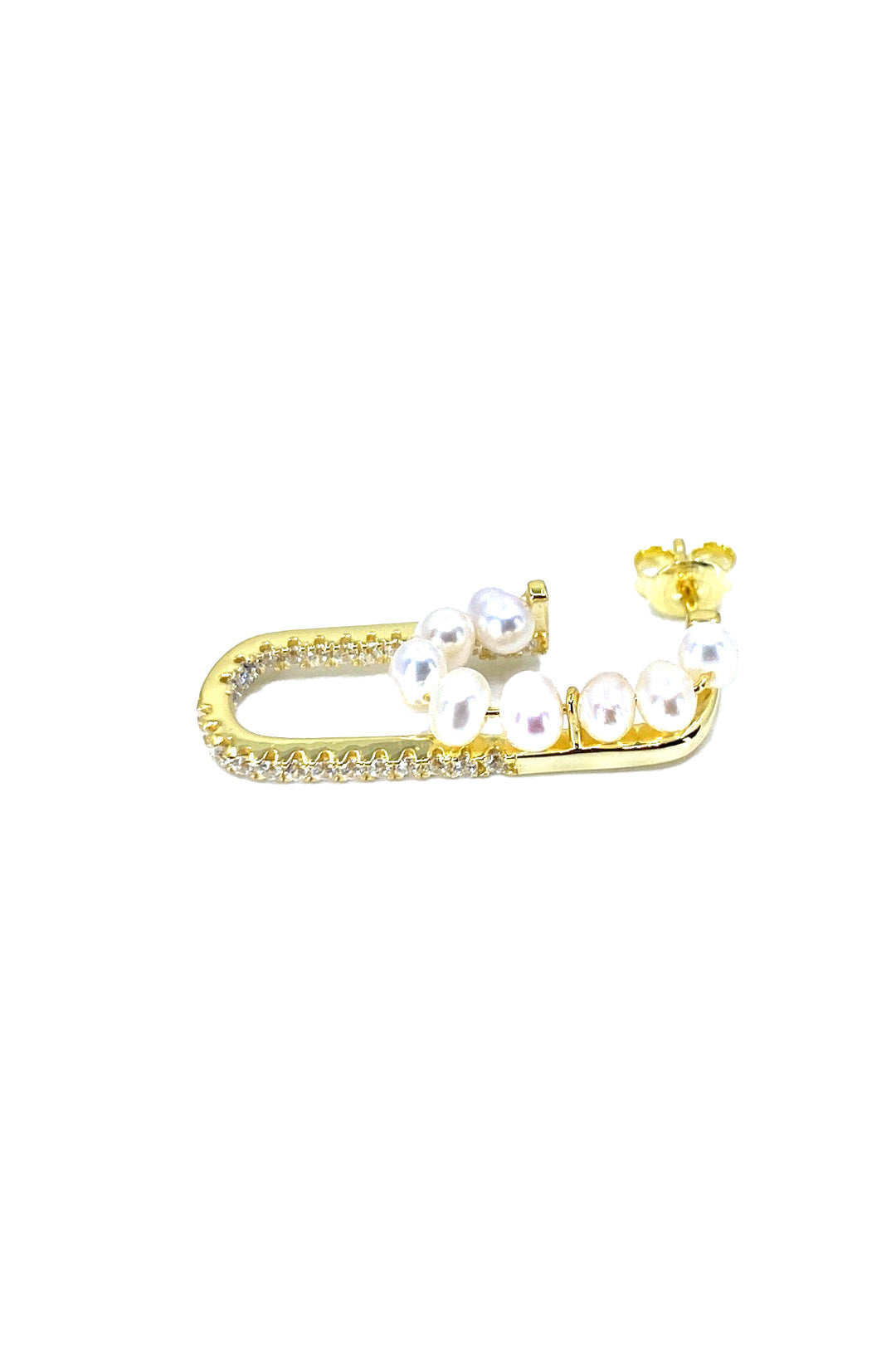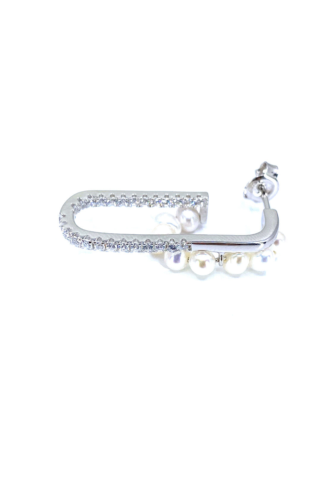 İnci Ve Taşlı Askı C Gümüş Küpe