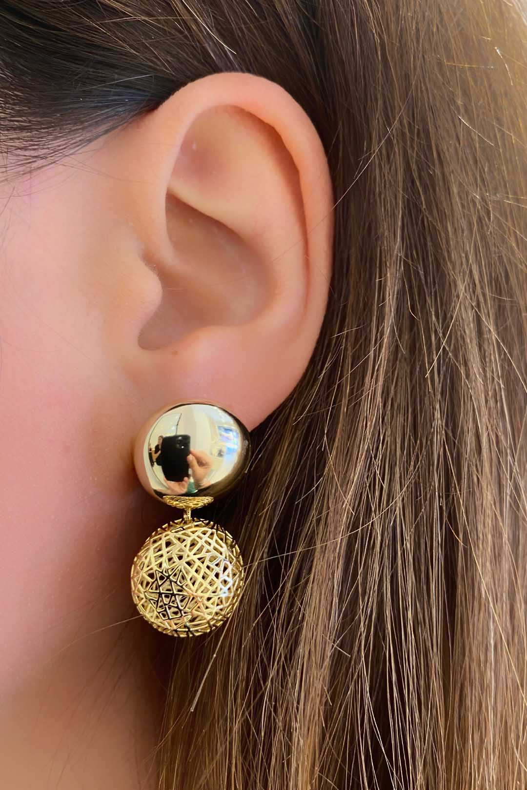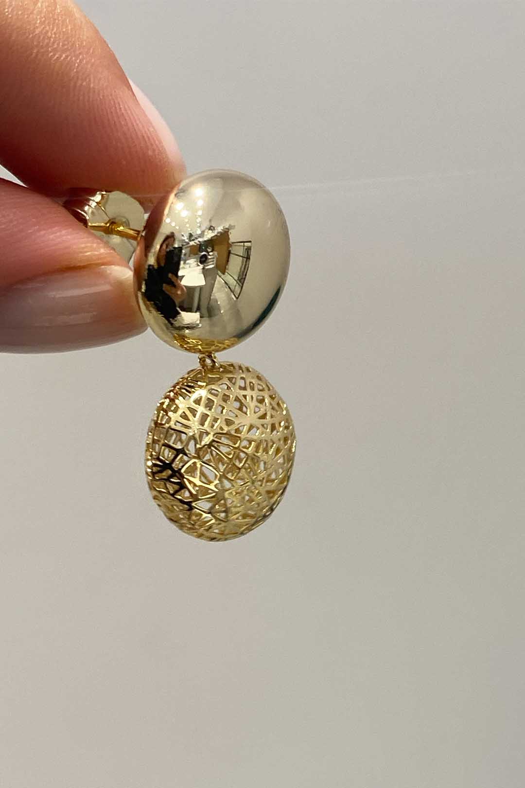 Kafesli Yuvarlak Bomby Gümüş Çivili Küpe