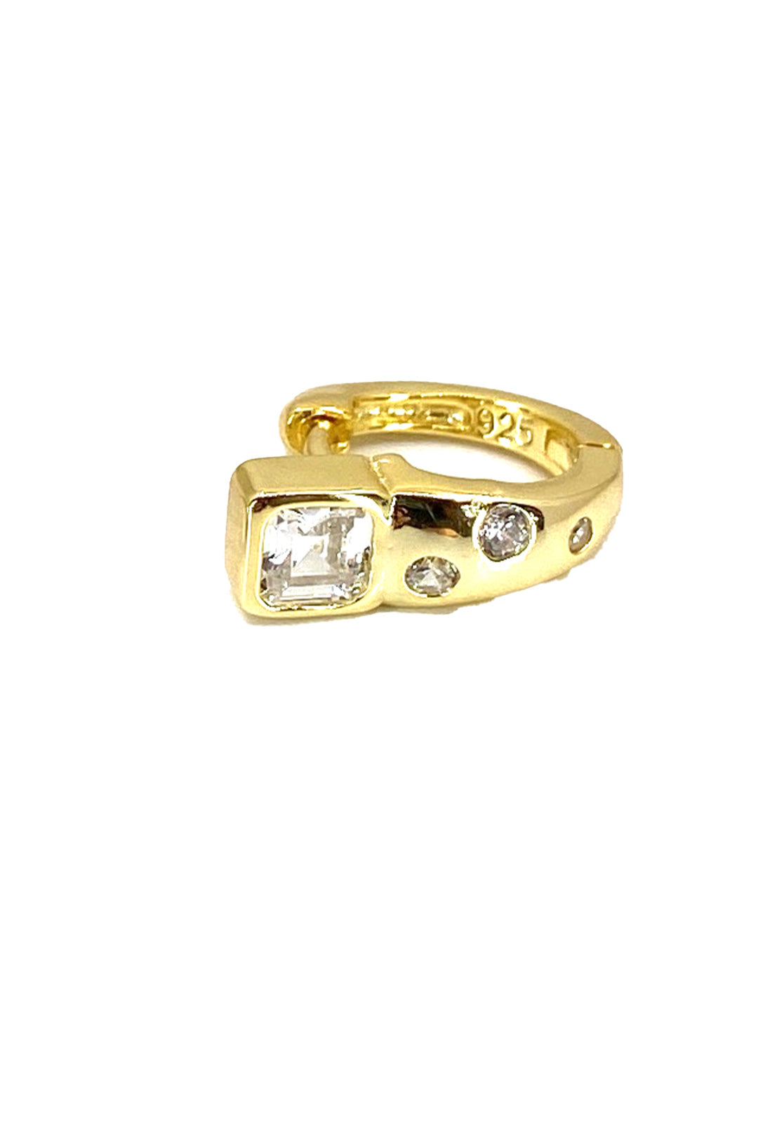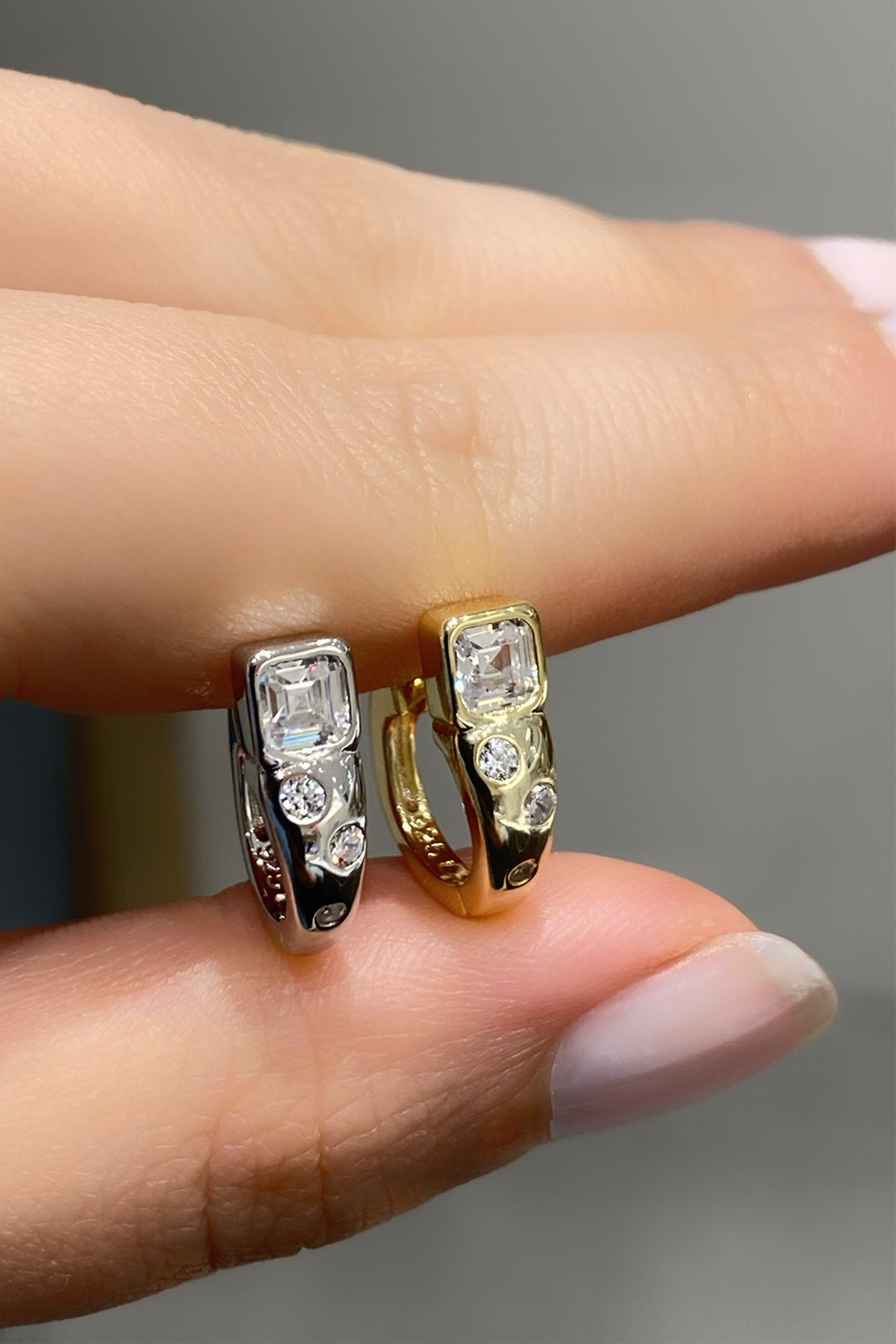 Kare Ve Gömülü Taş J Gümüş Küpe