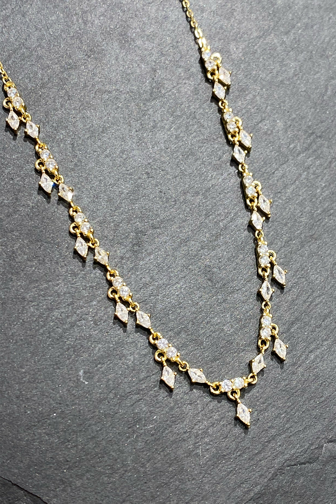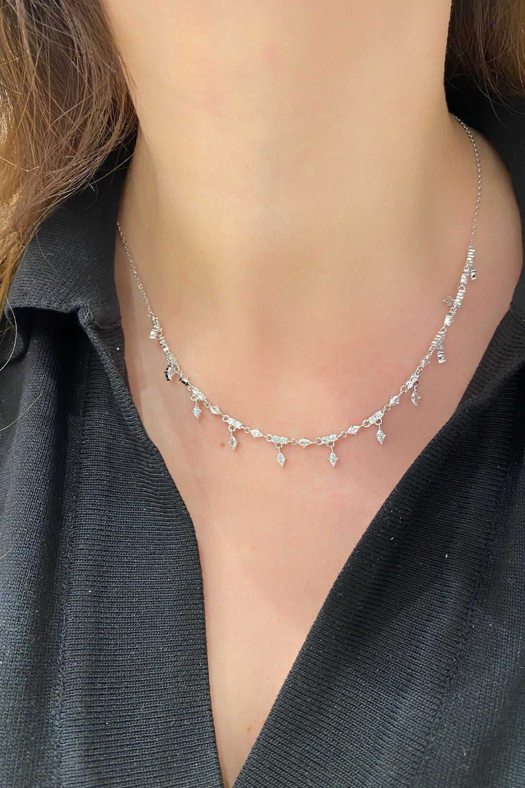 Karo ve Yuvarlak Taşlı Suyolu Gümüş Kolye