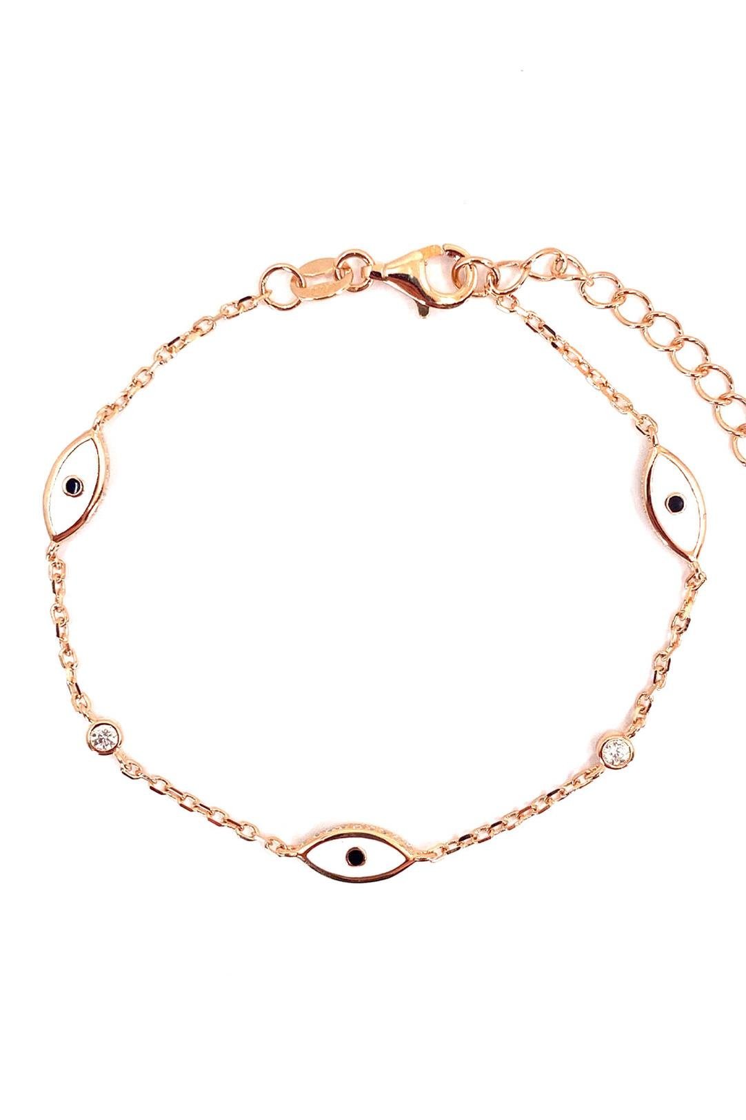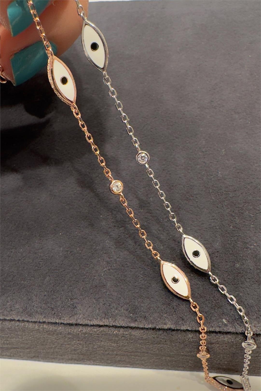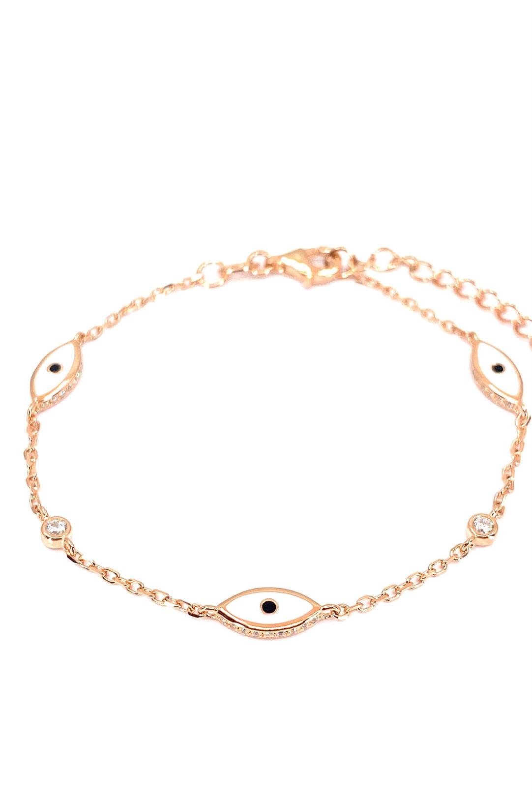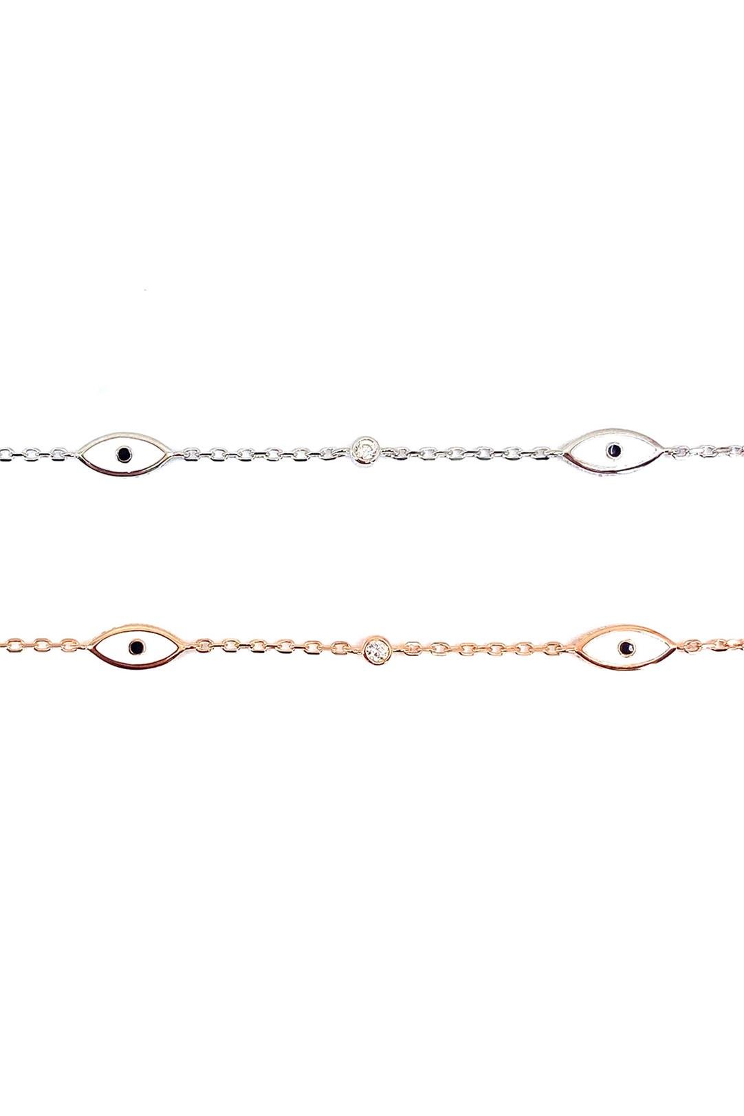 Kenarı Taşlı Mineli Üç Göz Zincir Gümüş Bileklik
