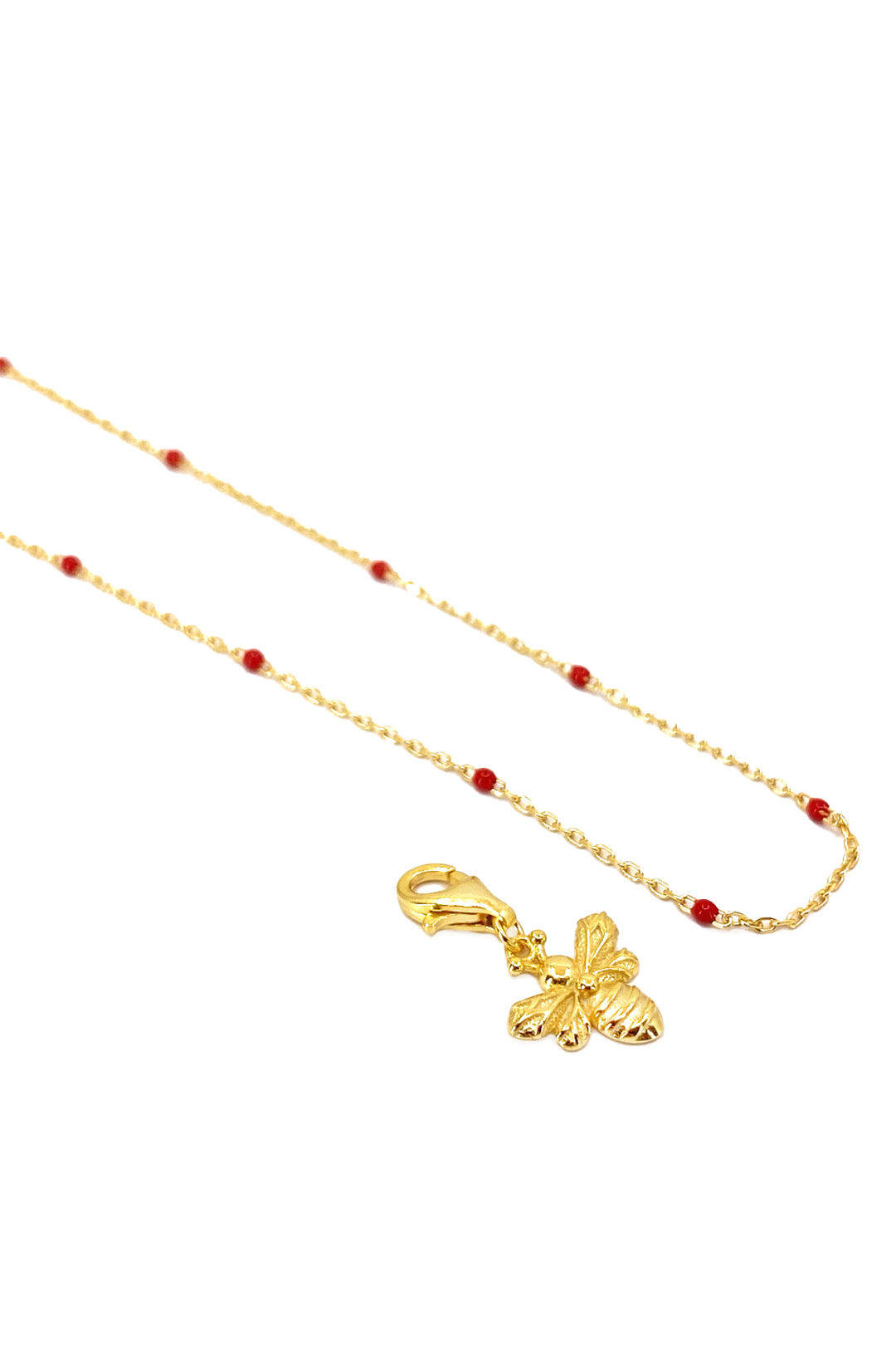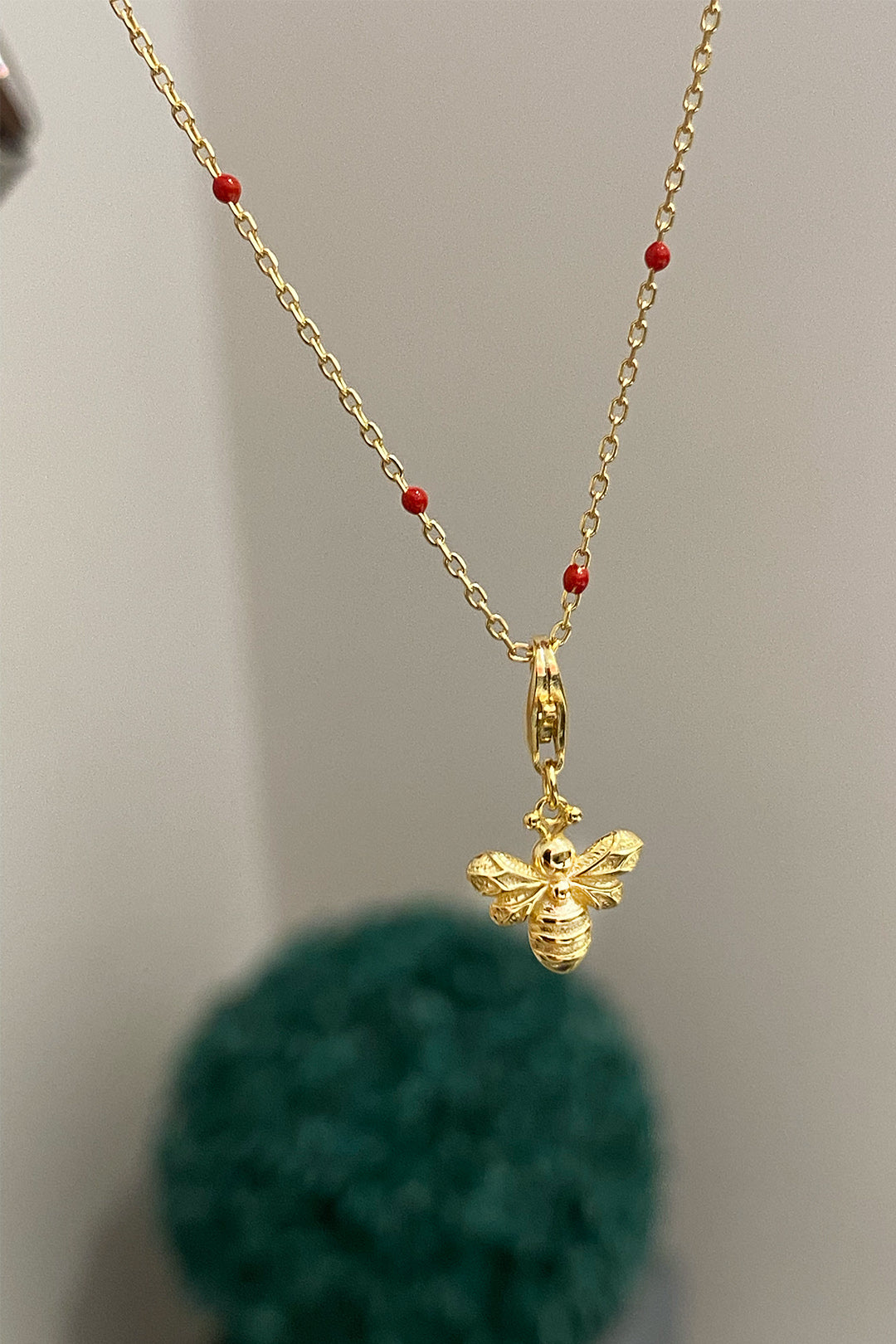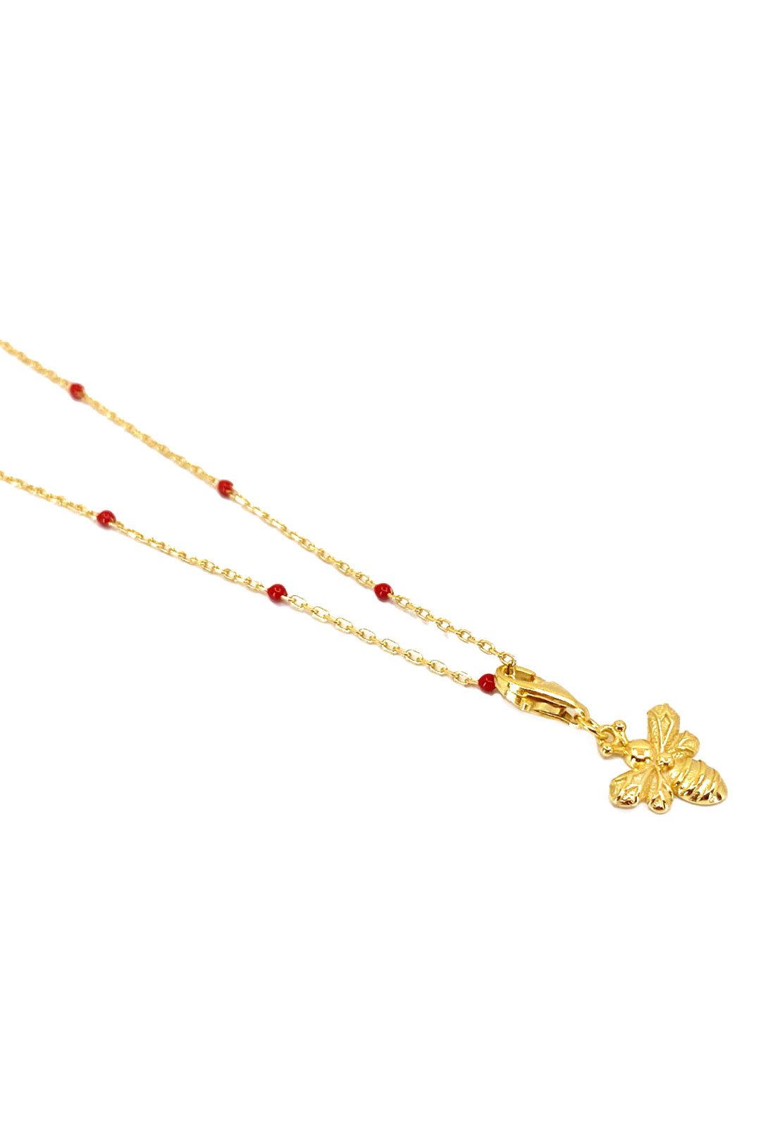 Kırmızı Mineli Arı Detay Gümüş Kolye