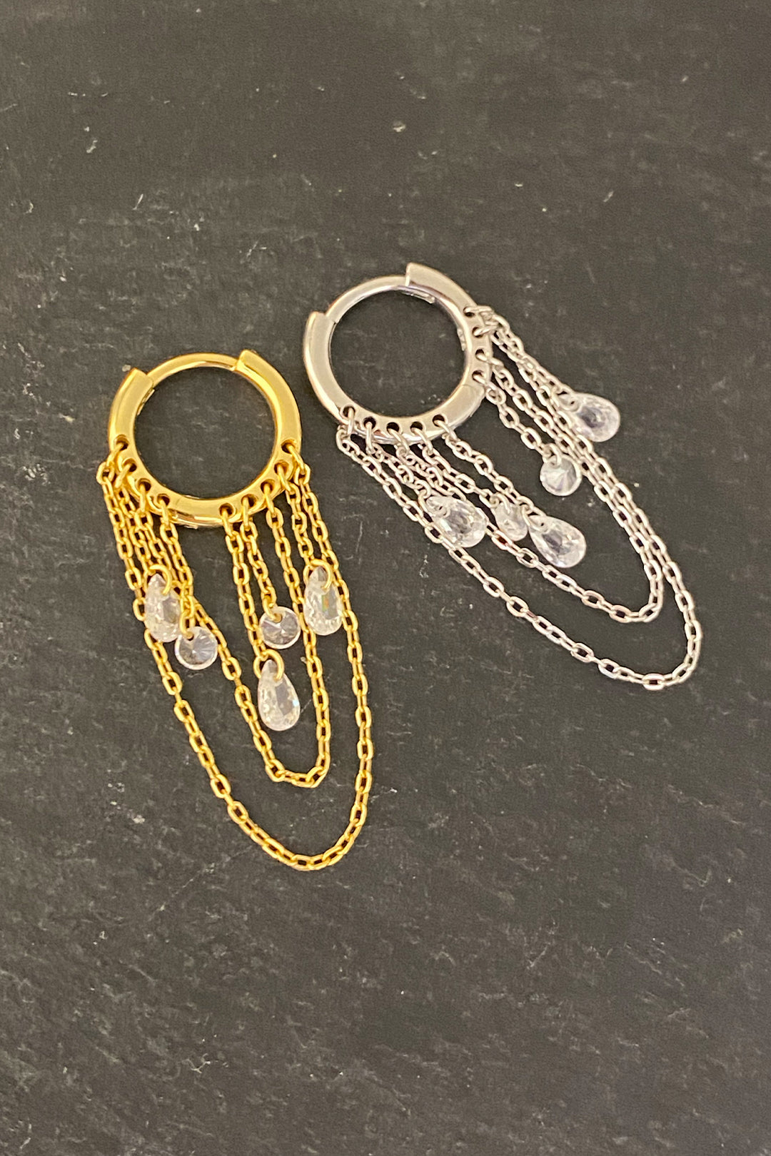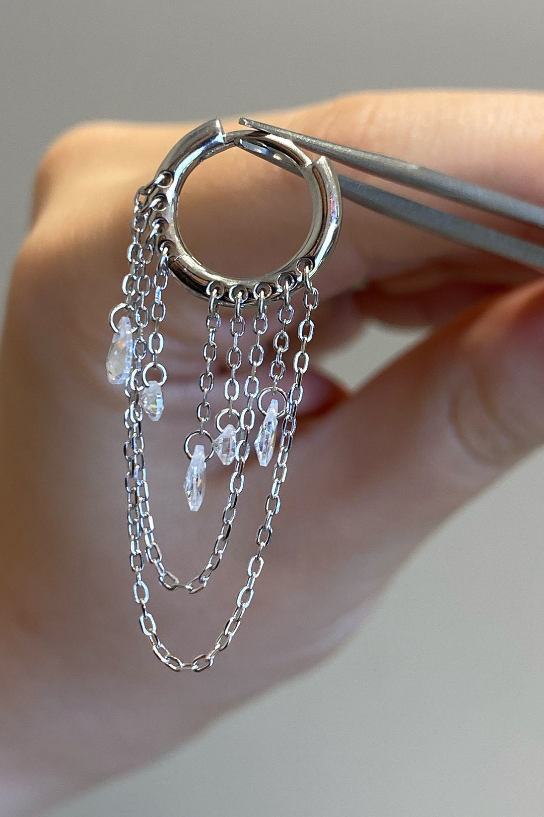 Kristal Beş Taş Sallantılı Boğum Gümüş Küpe