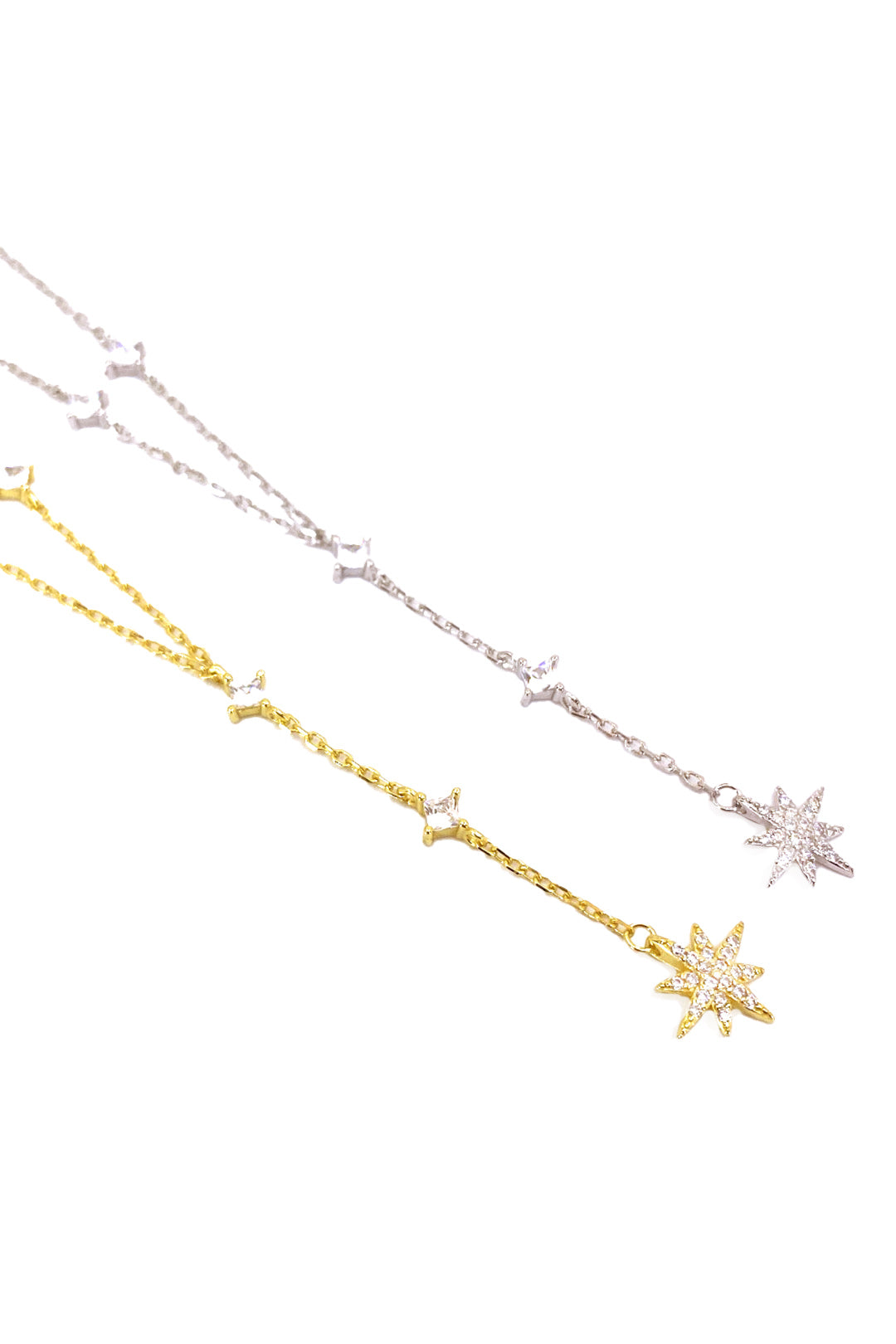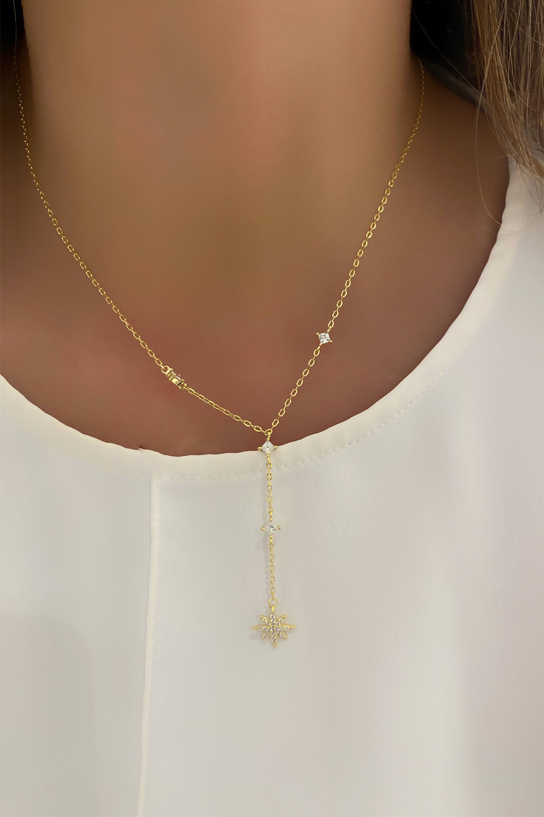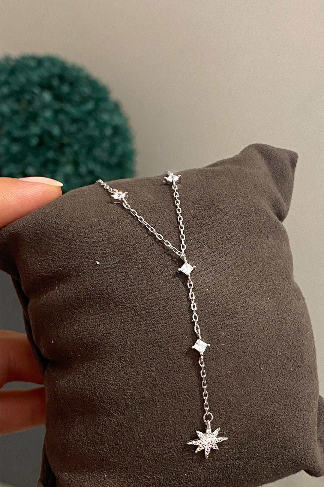 Kutupyıldızı Detay Dört Karo Gümüş Y Kolye