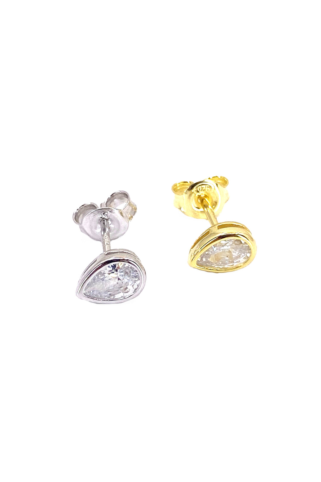 L Beyaz Sıvama Damla Gümüş Çivili Küpe