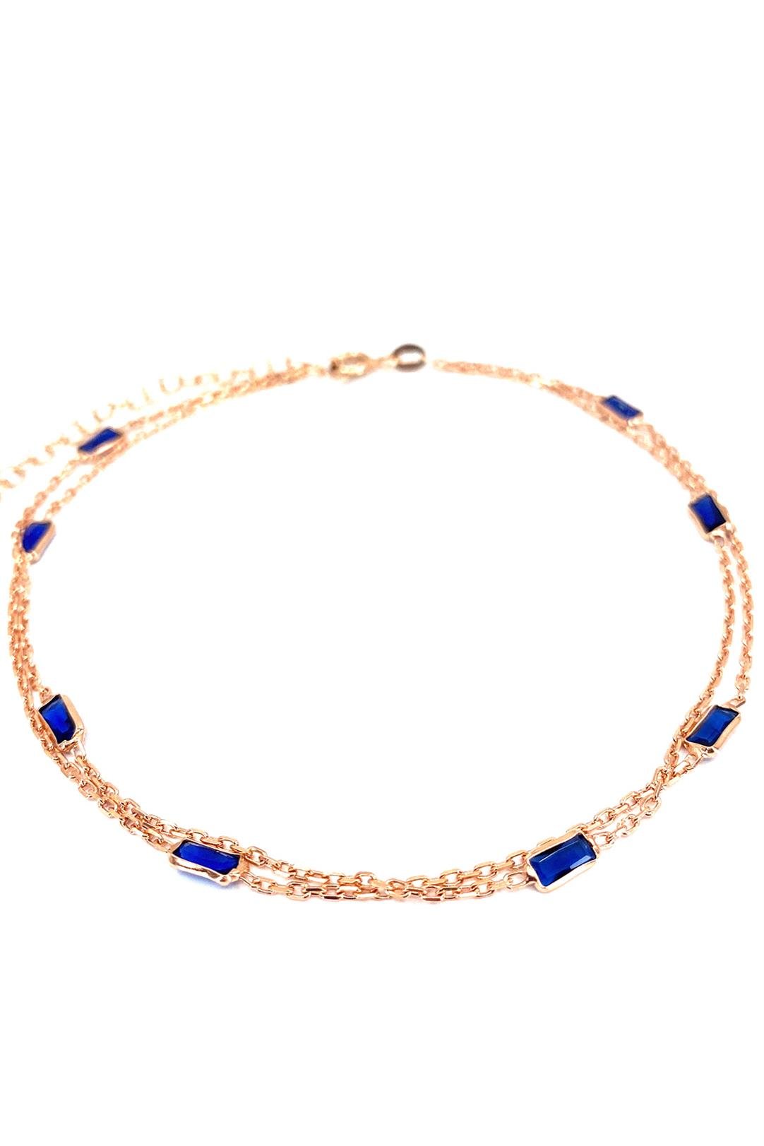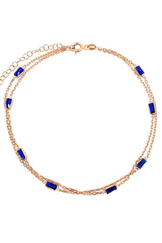 Lacivert Baget İki Sıra Gümüş Halhal