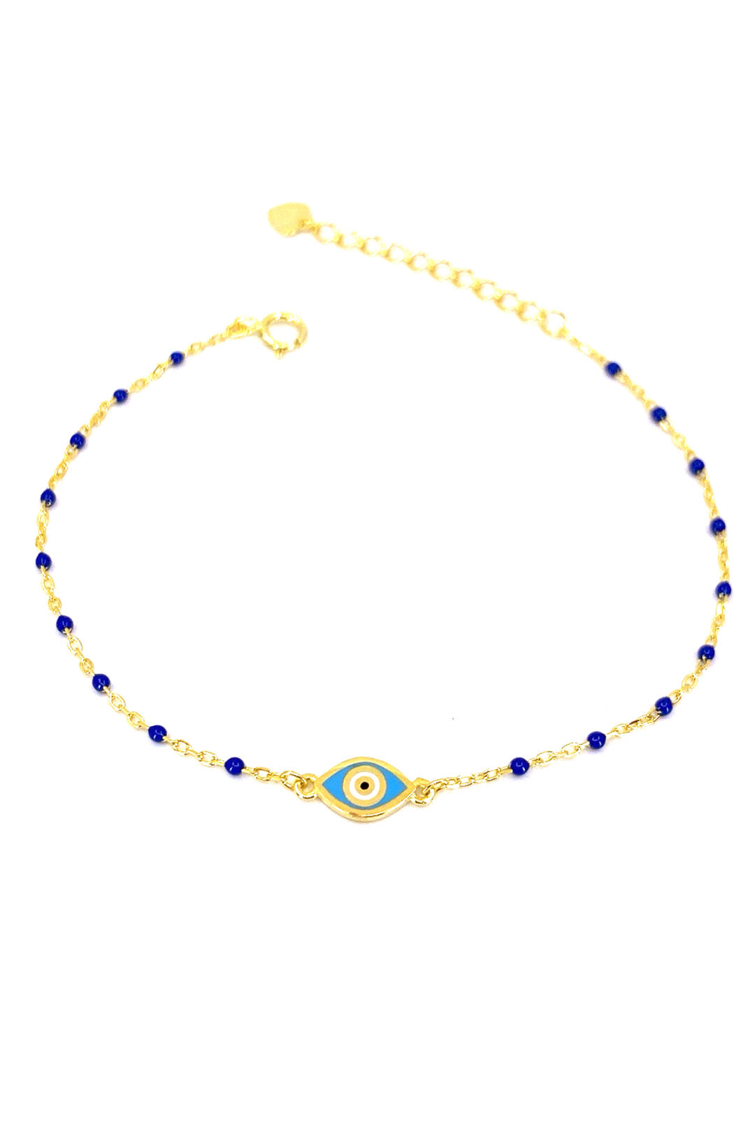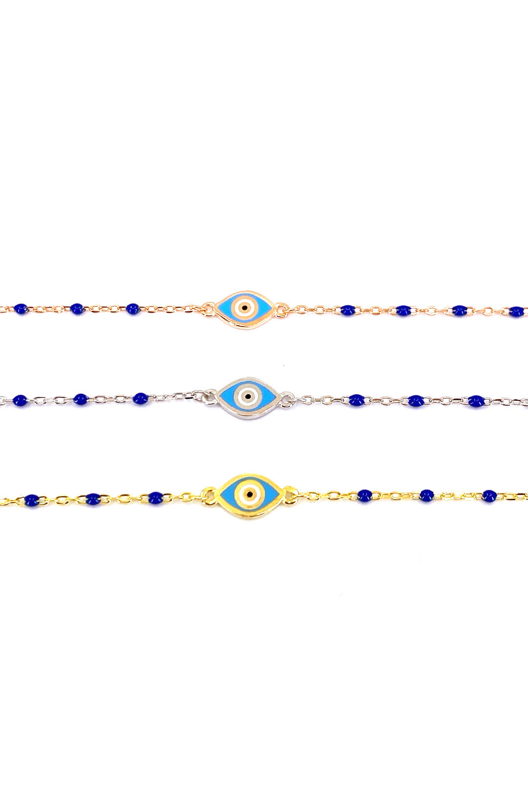 Lacivert Mineli Tek Mekik Göz Gümüş Bileklik