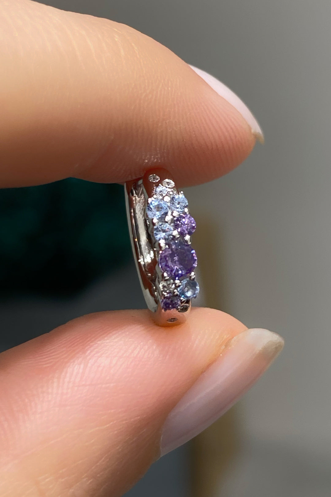Lila Ve Beyaz Dağınık Taşlı Gümüş Halka Küpe