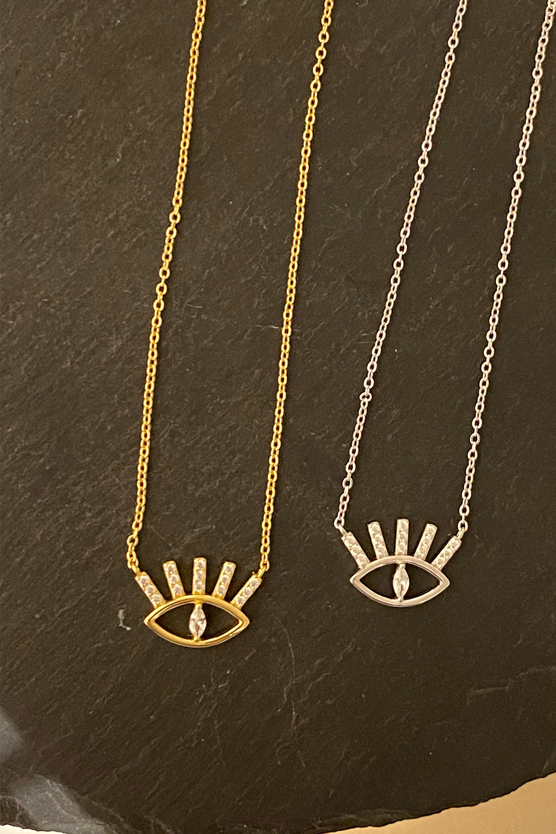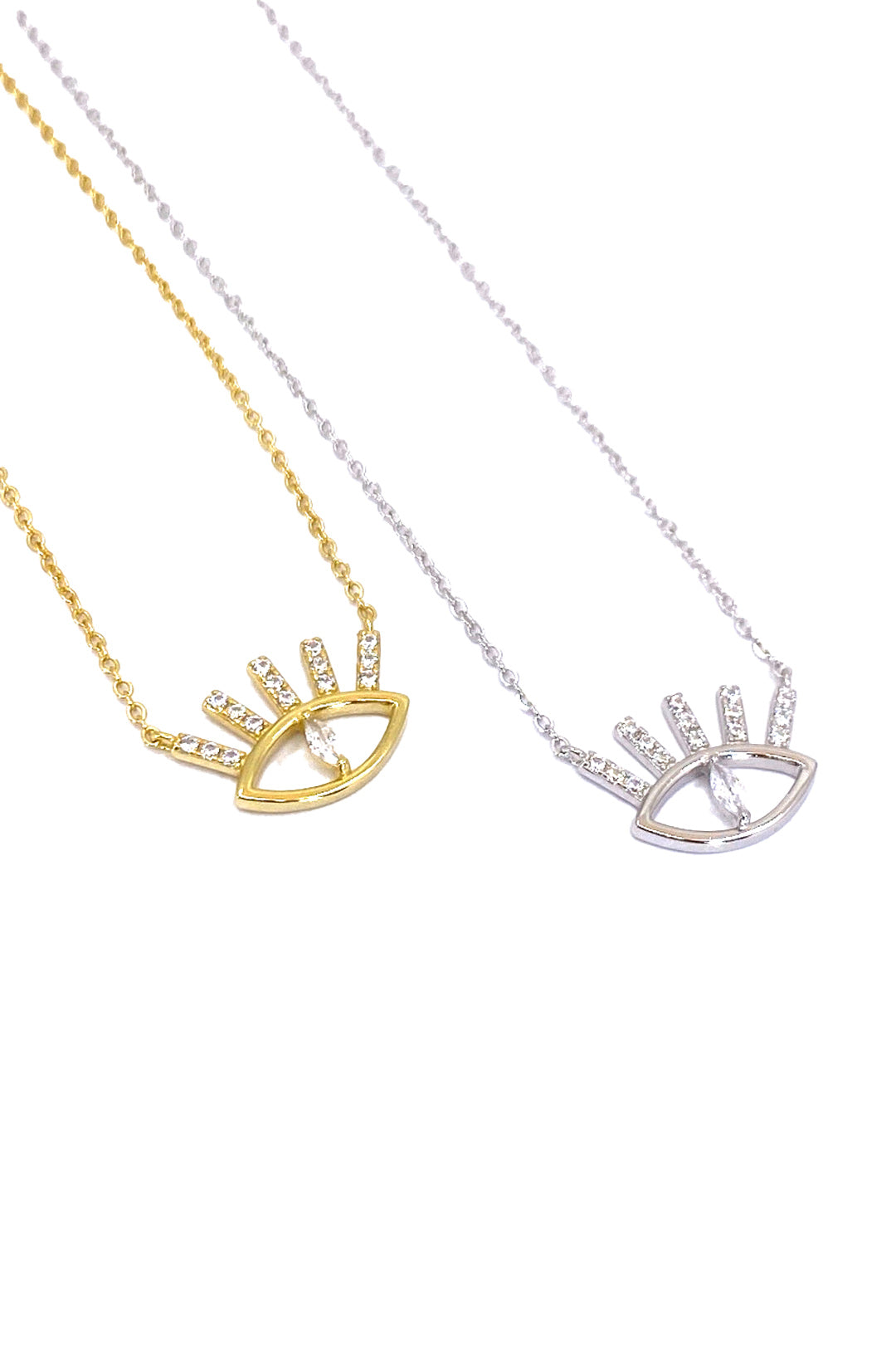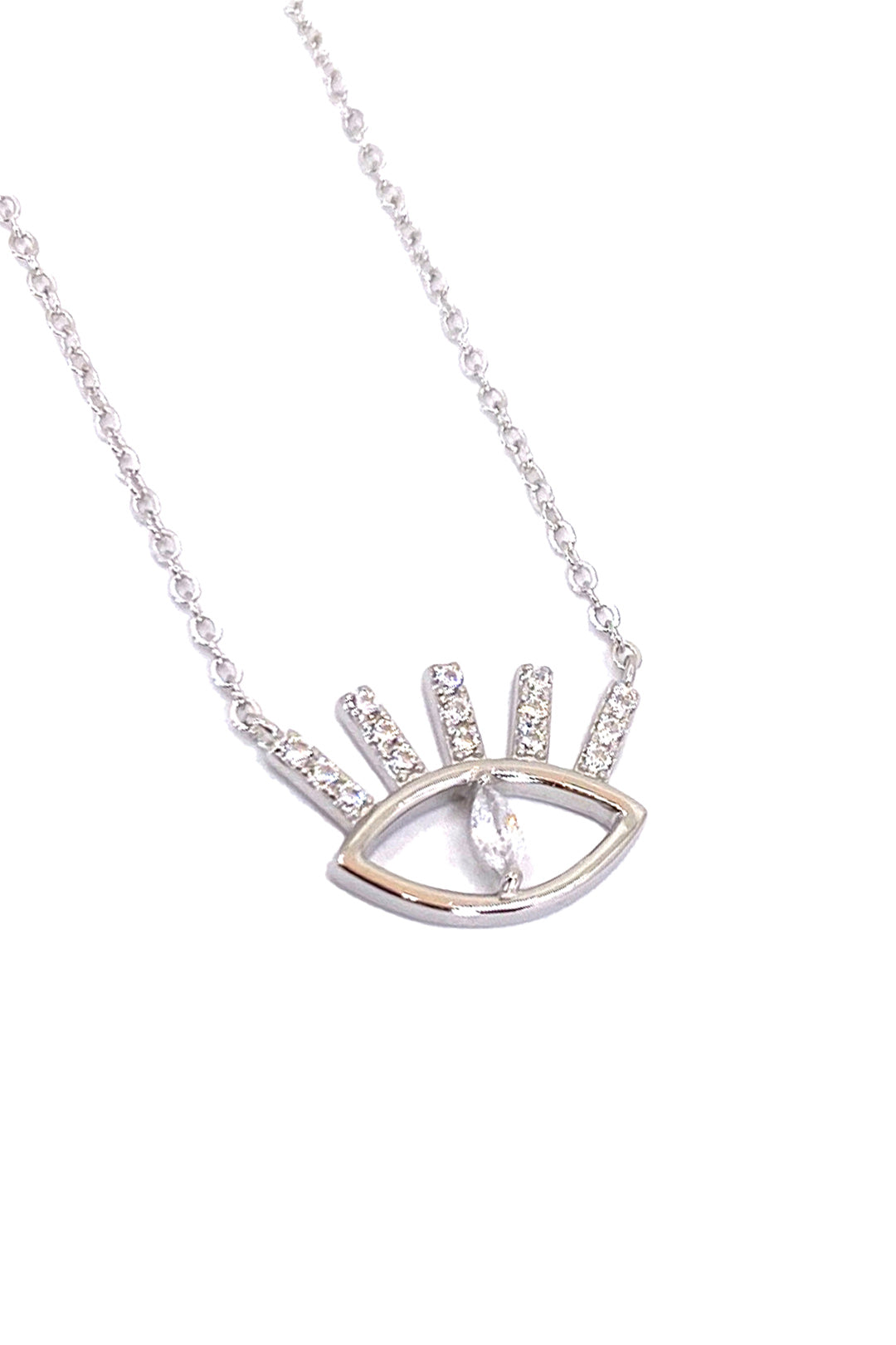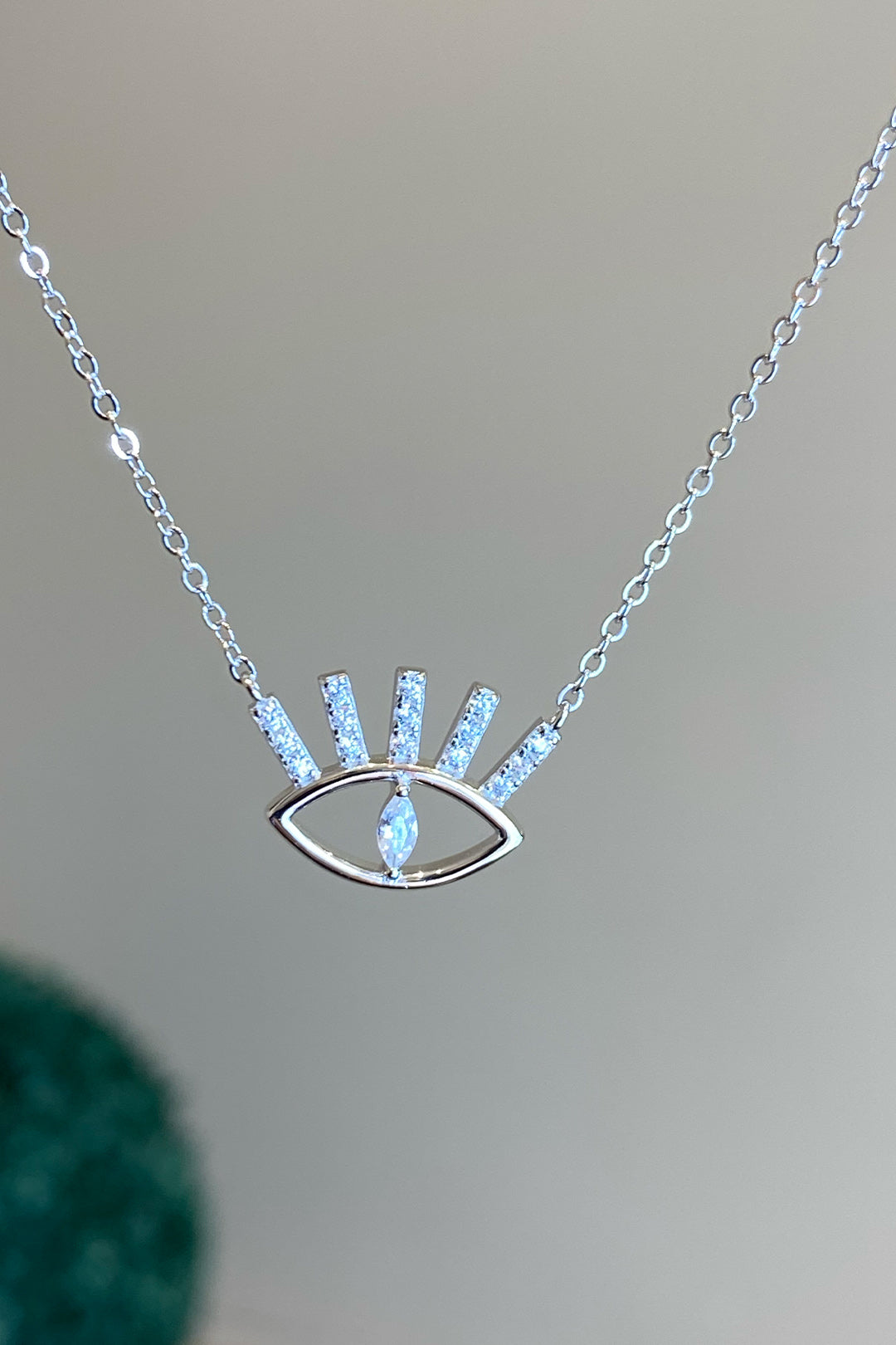 Markiz Detay Beş Taşlı Çizgi Göz Gümüş Kolye