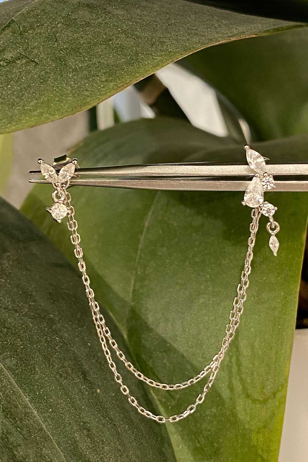 Markiz Ve Damla Tasarım Boğum İkili Gümüş Çivili Küpe
