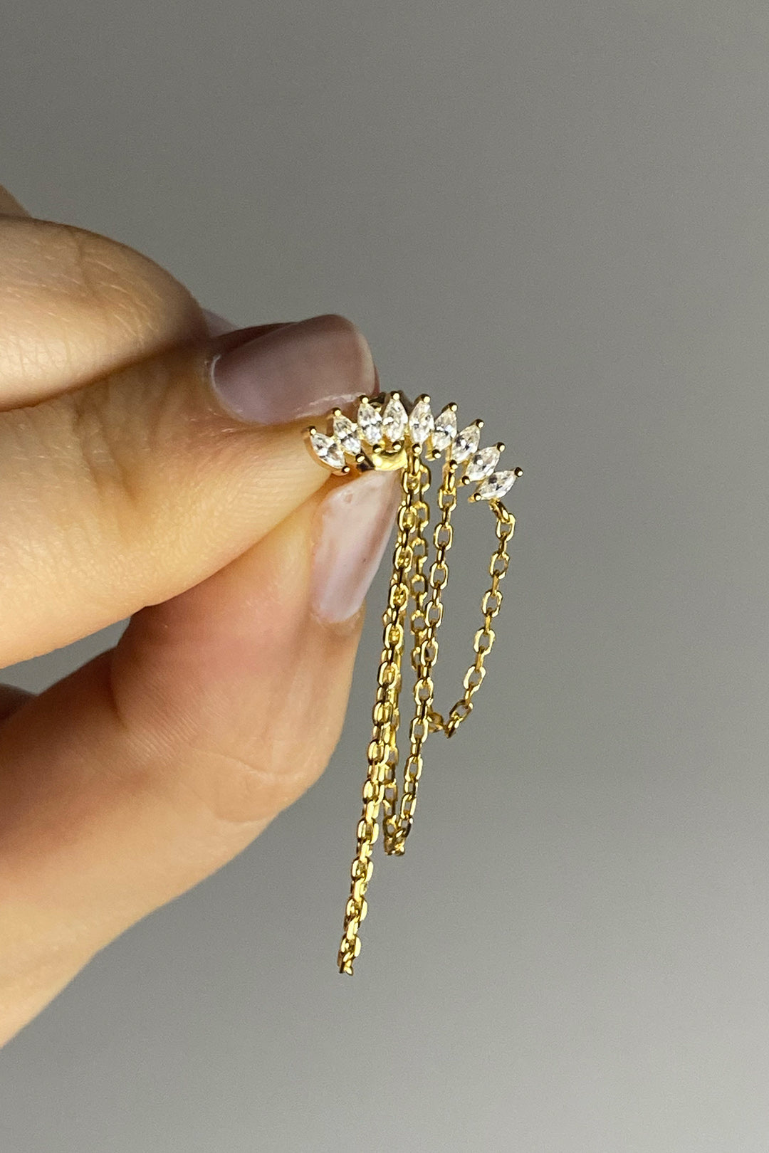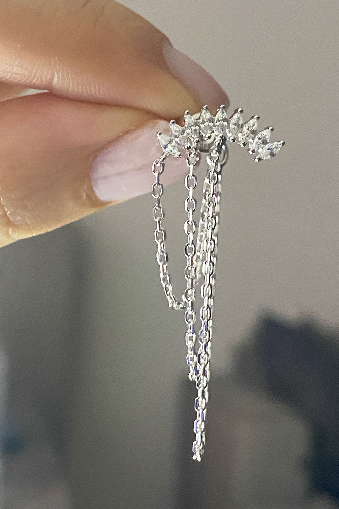 Markiz Yay Üçlü Boğum Gümüş Zincir Klips Küpe
