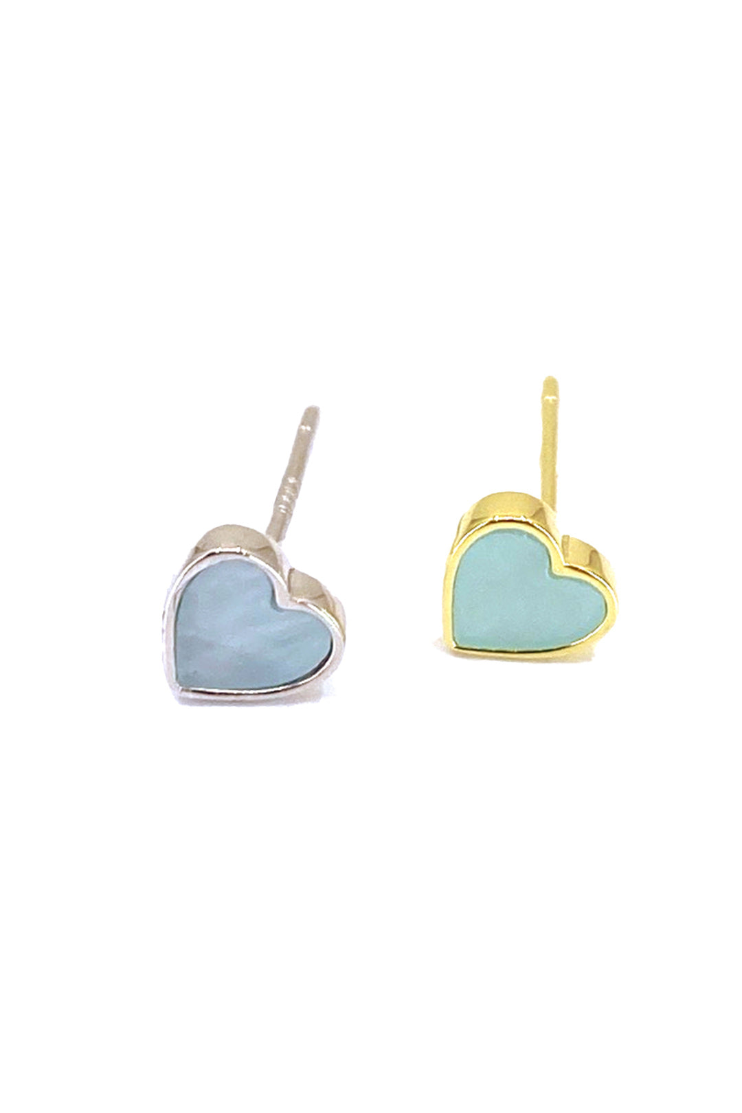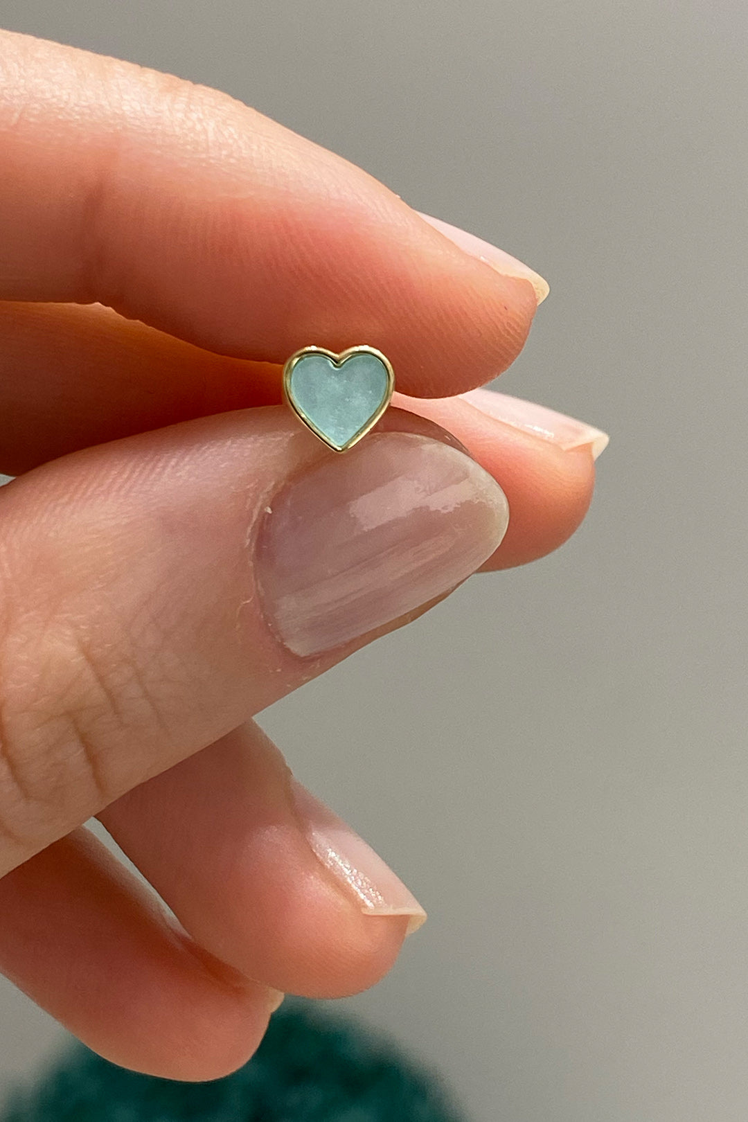 Mavi Mineli Kalp Gümüş Çivili Küpe