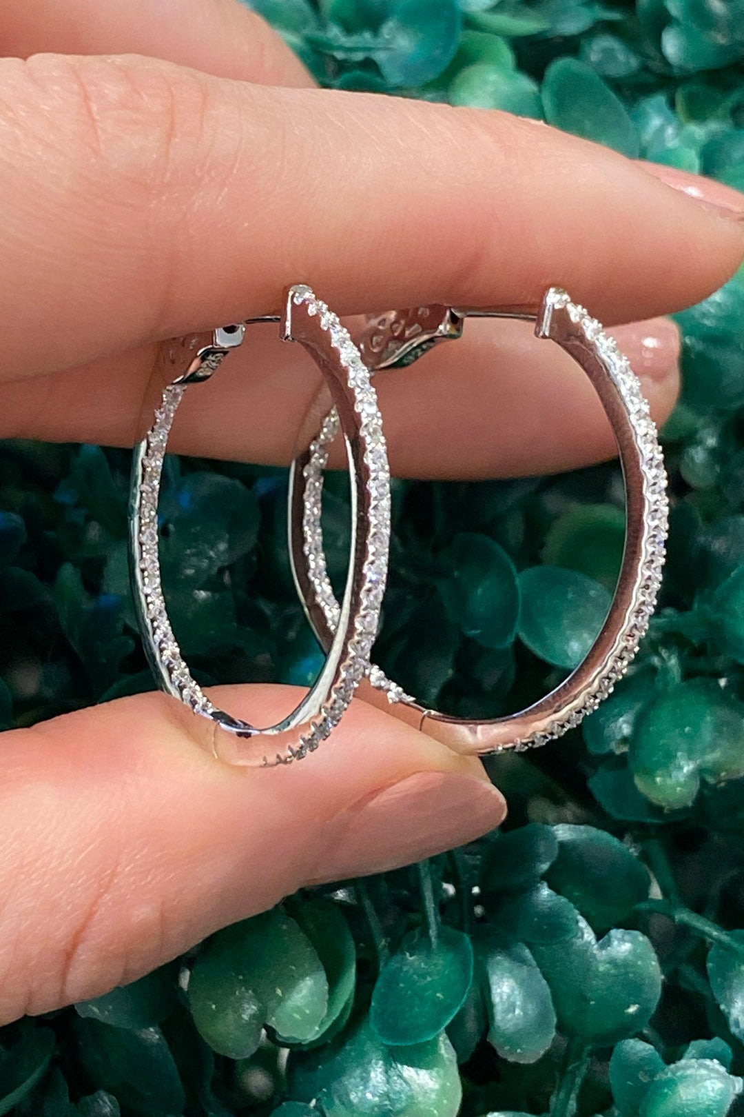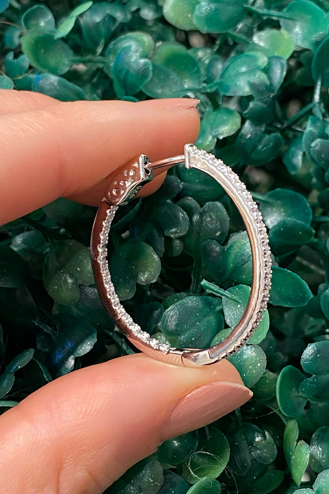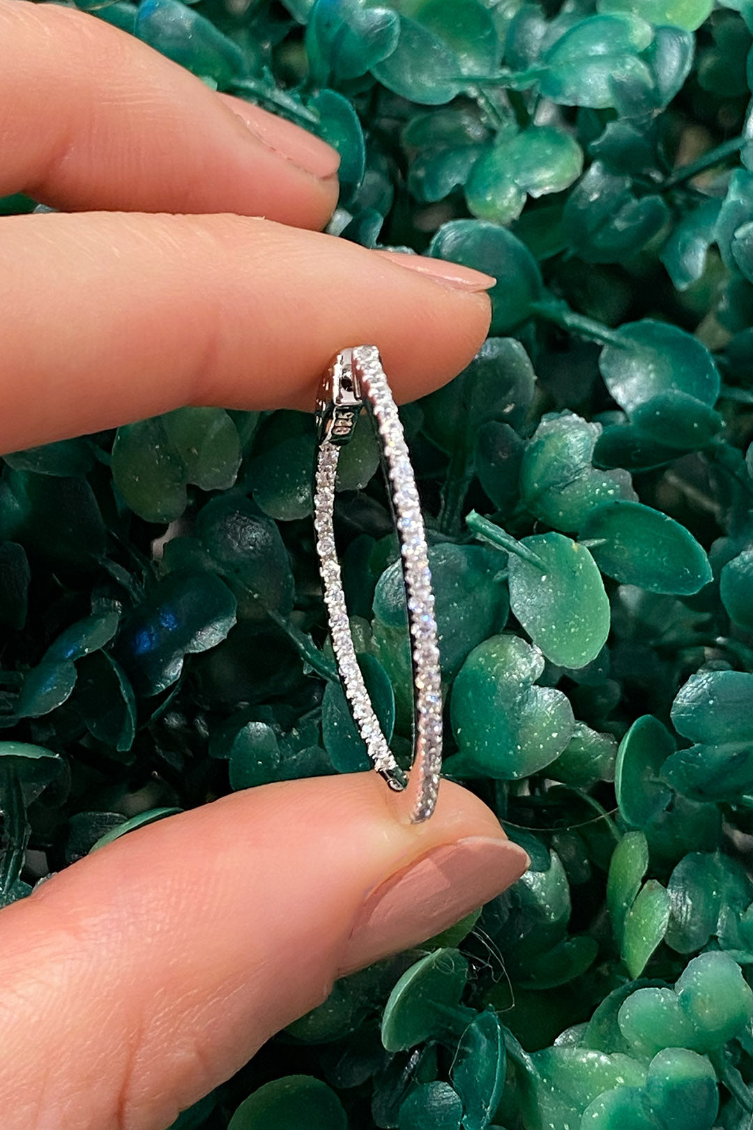 Midi Kare Görünümlü İnce Taşlı Gümüş Halka Küpe