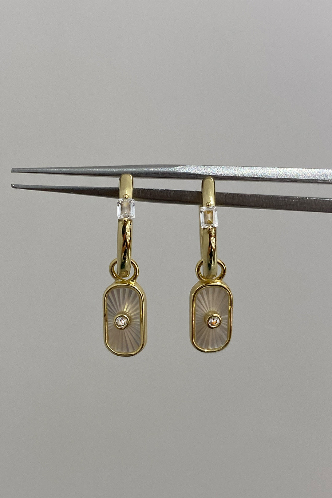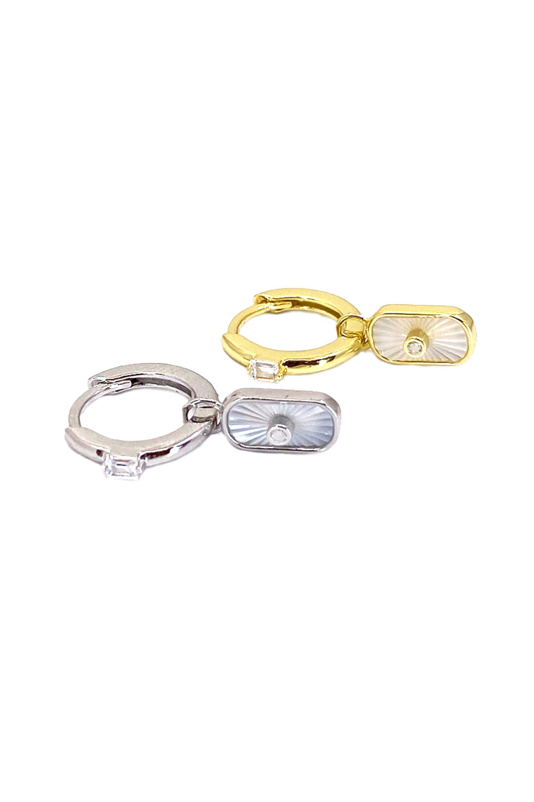 Mini Baget Ve Sedef Dikdörtgen Gümüş Küpe
