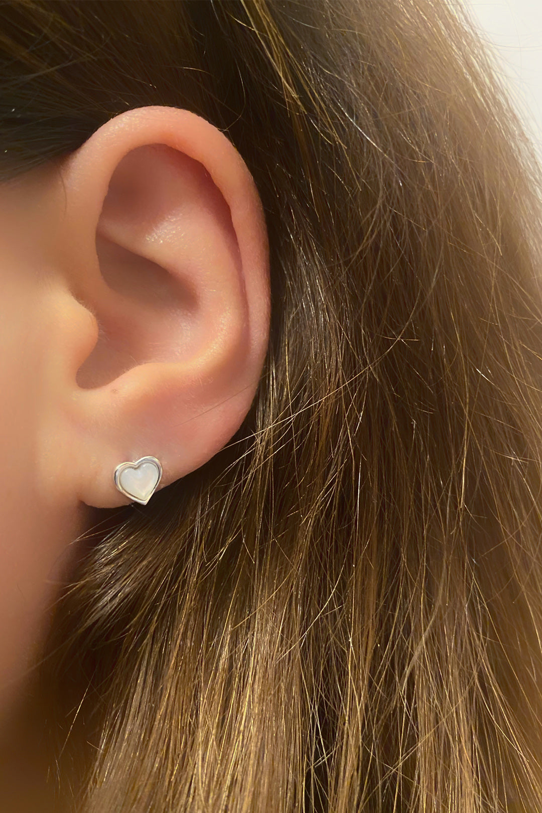 Mini Sedef Kalp Gümüş Çivili Küpe