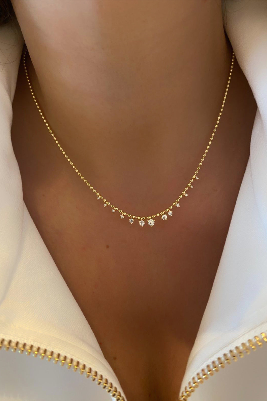 Mini Üç Tırnak Az Taşlı Sallantılı Top Zincir Gümüş Kolye