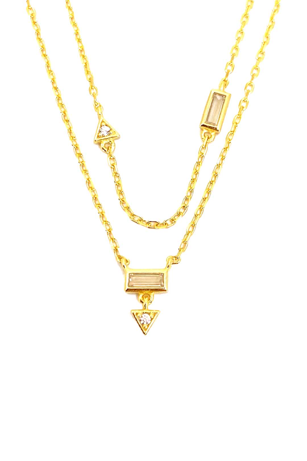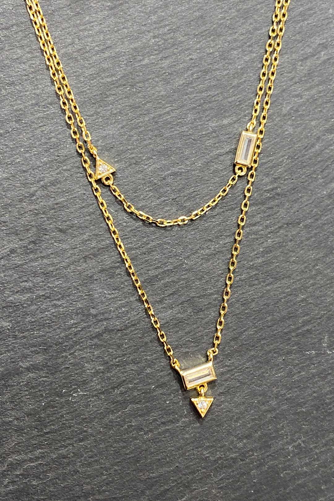 Mini Üçgen ve Baget İkili Gümüş Kolye