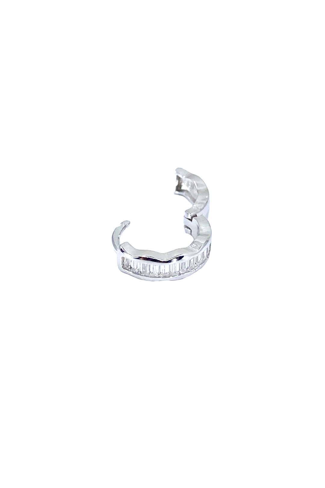 Minimal Gömülü Baget Detay Dalgalı Gümüş Halka Küpe