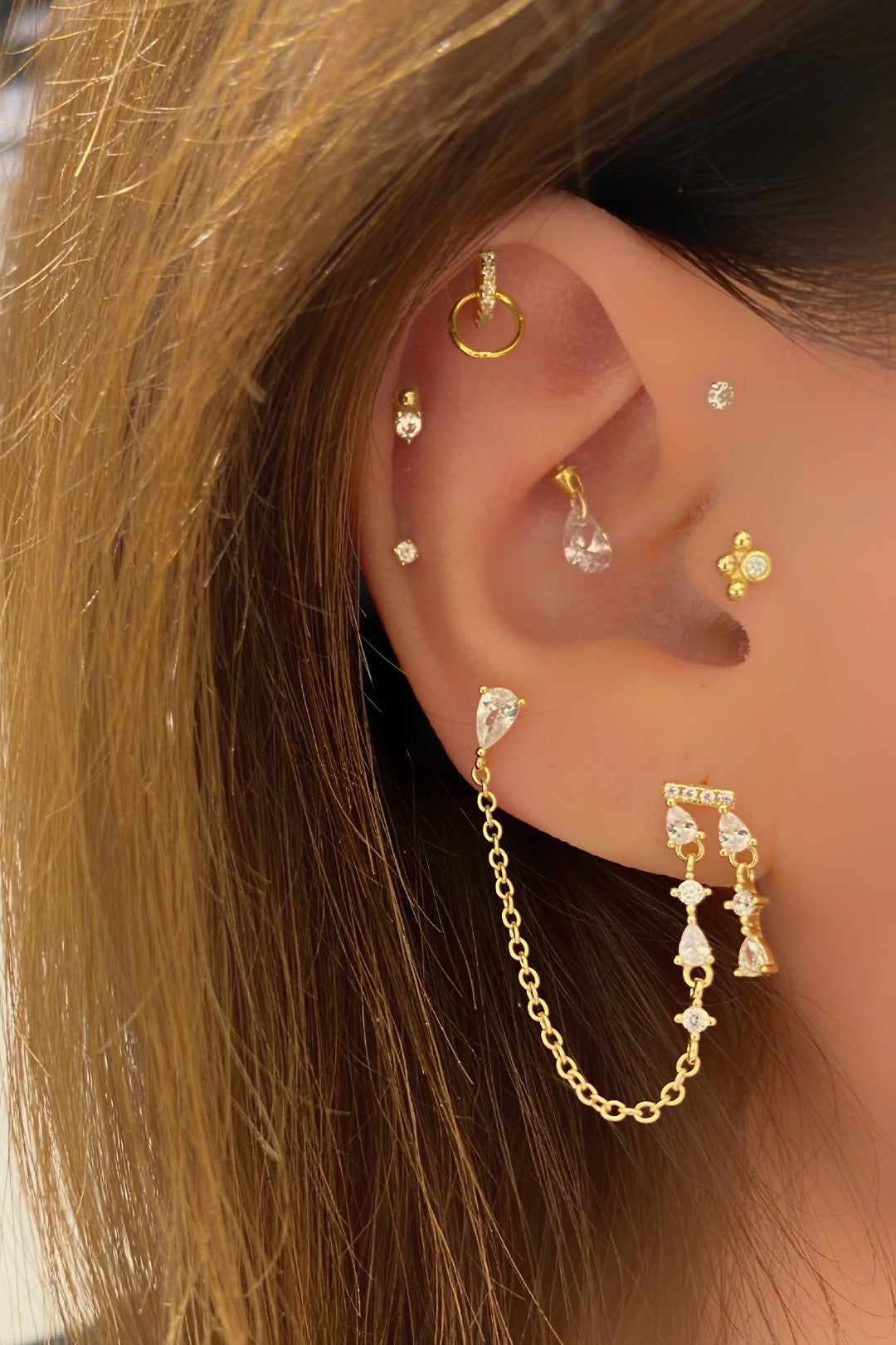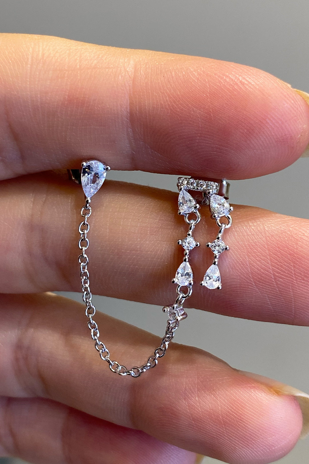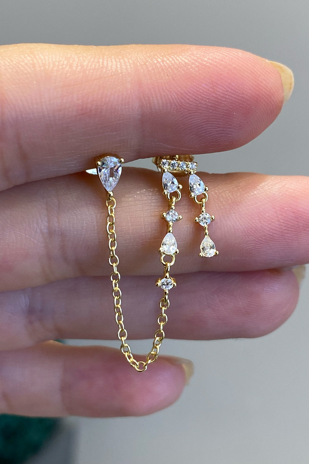 Minimal İki Damla Taşlı İkili Gümüş Küpe