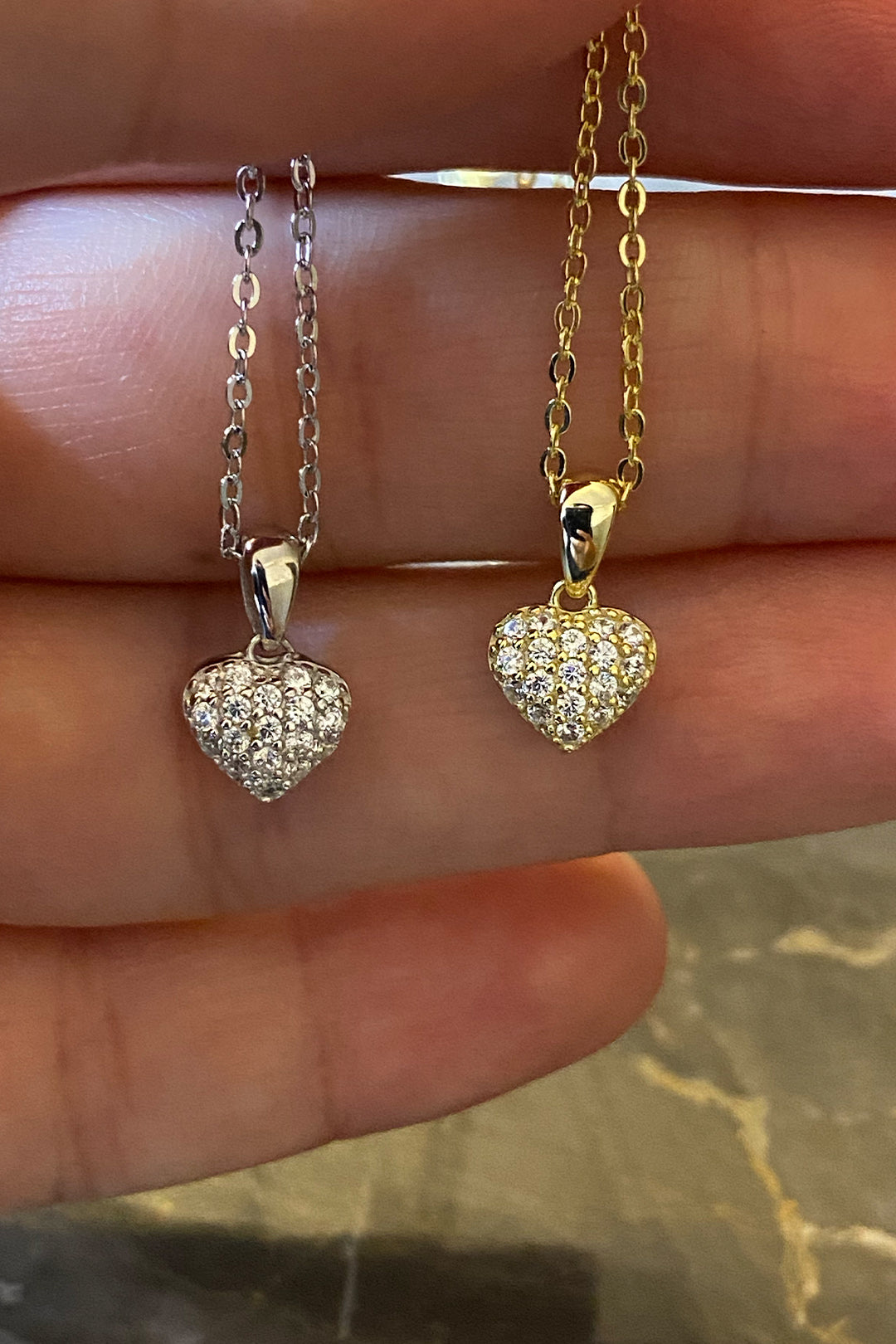 Minimal Taşlı Tombul Kalp Gümüş Kolye