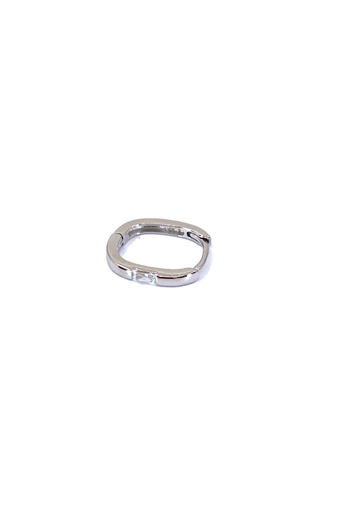 Minimal Tek Baget Detay Kare Gümüş Halka Küpe