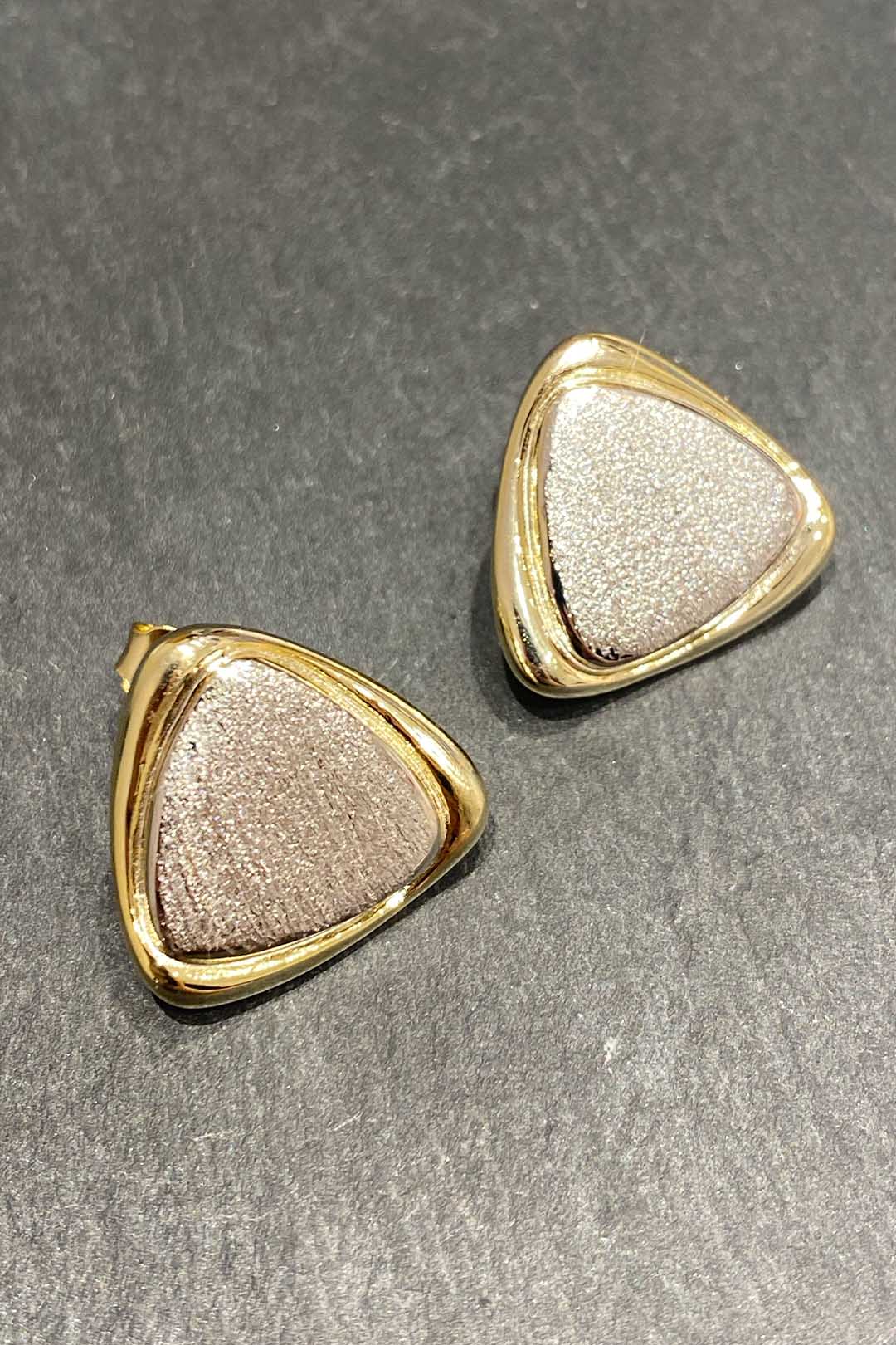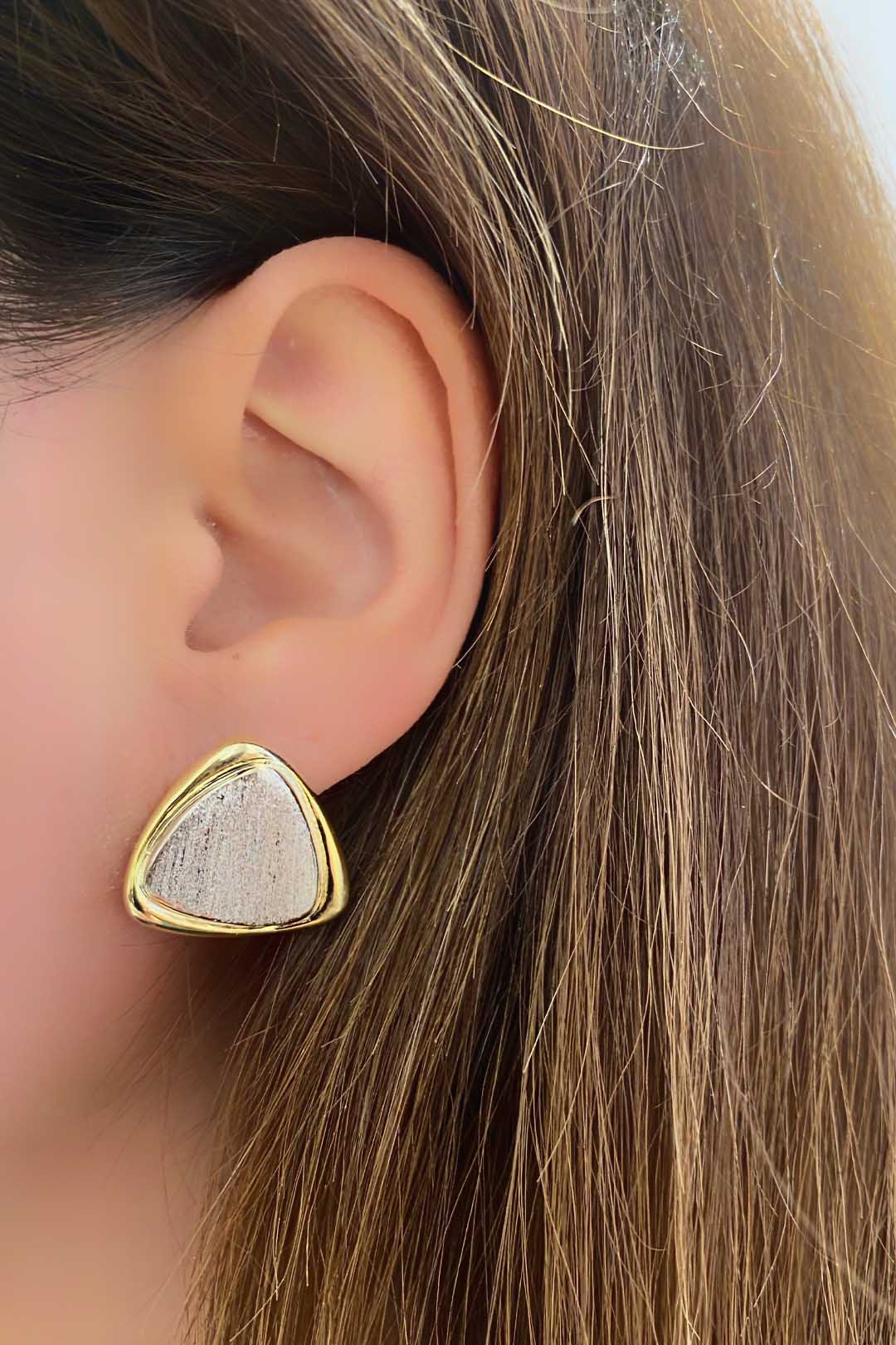 Mix Broseli Üçgen Gümüş Çivili Küpe