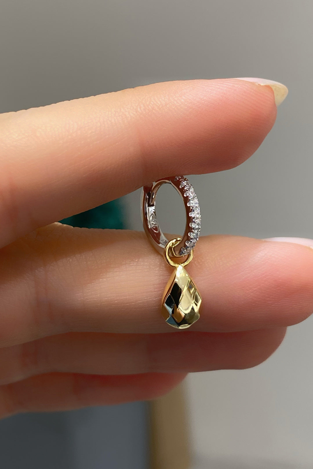 Mix Köşeli Damla Sallantılı Gümüş Küpe