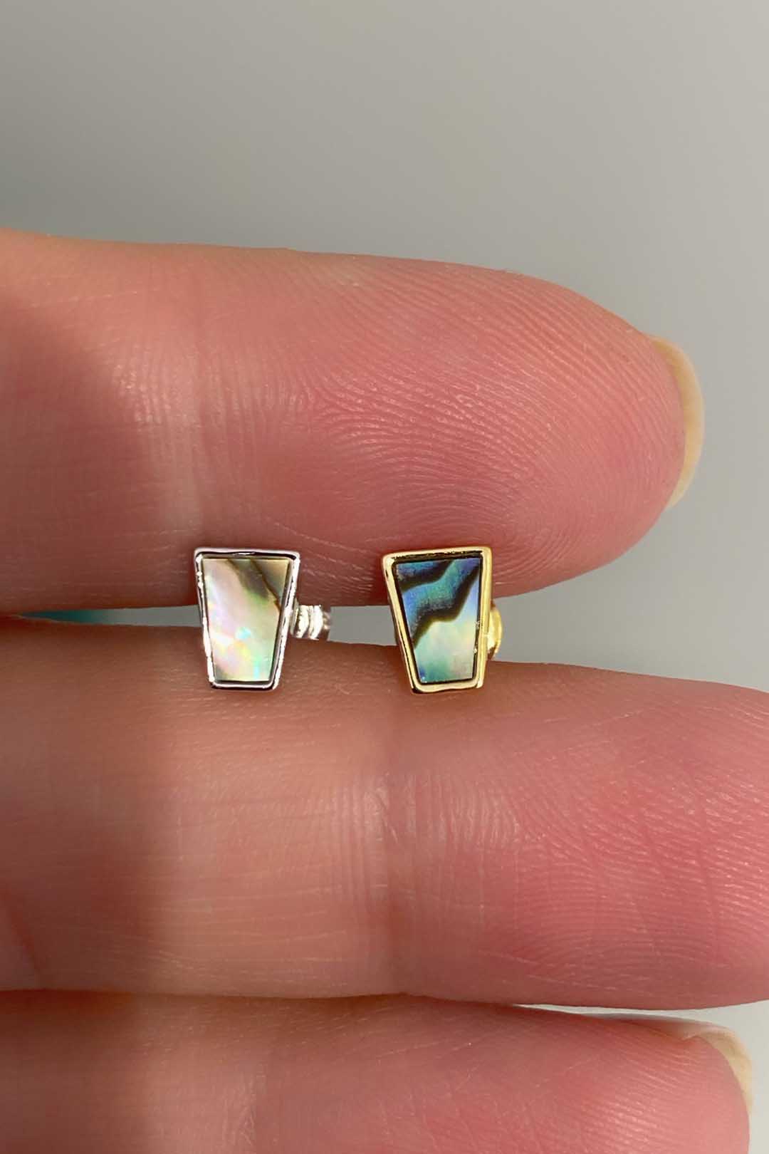 Okyanus Sedefi Dik Köşegenli Gümüş Çivili Küpe