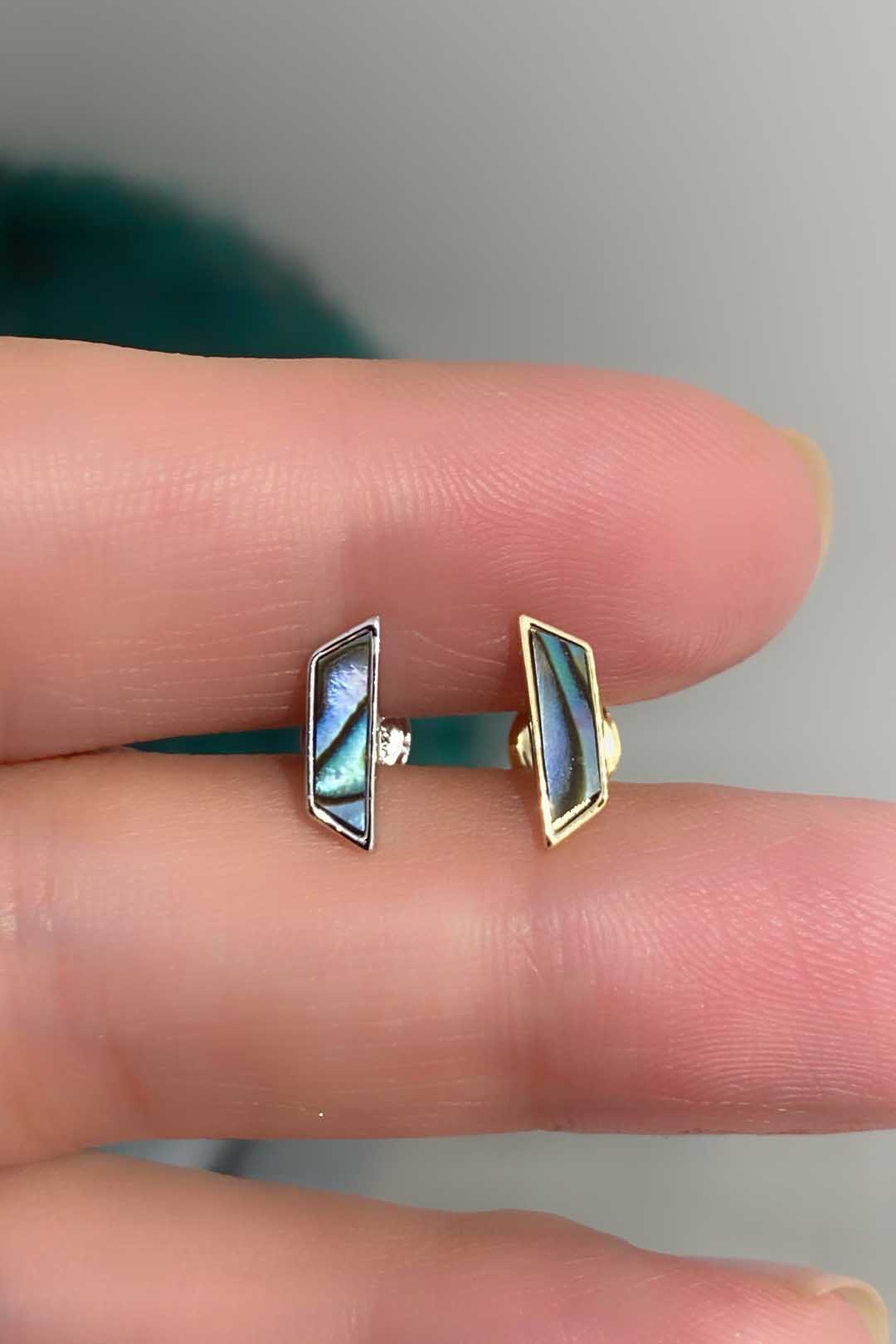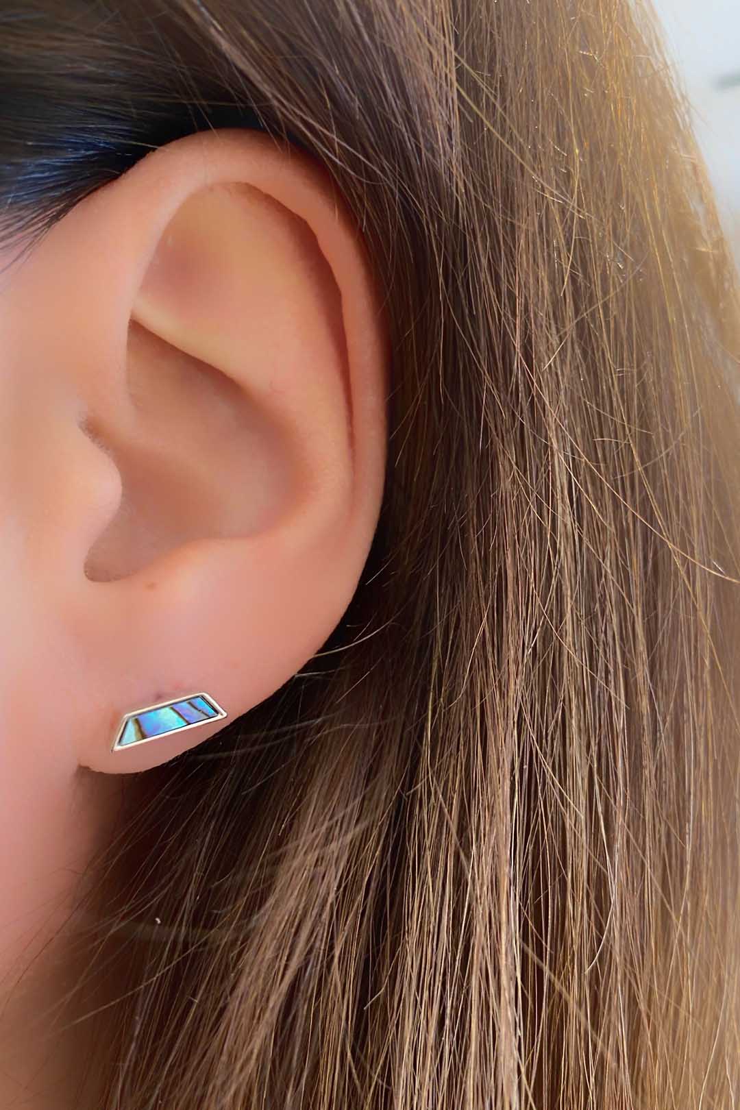 Okyanus Sedefi Yatay Köşegenli Gümüş Çivili Küpe