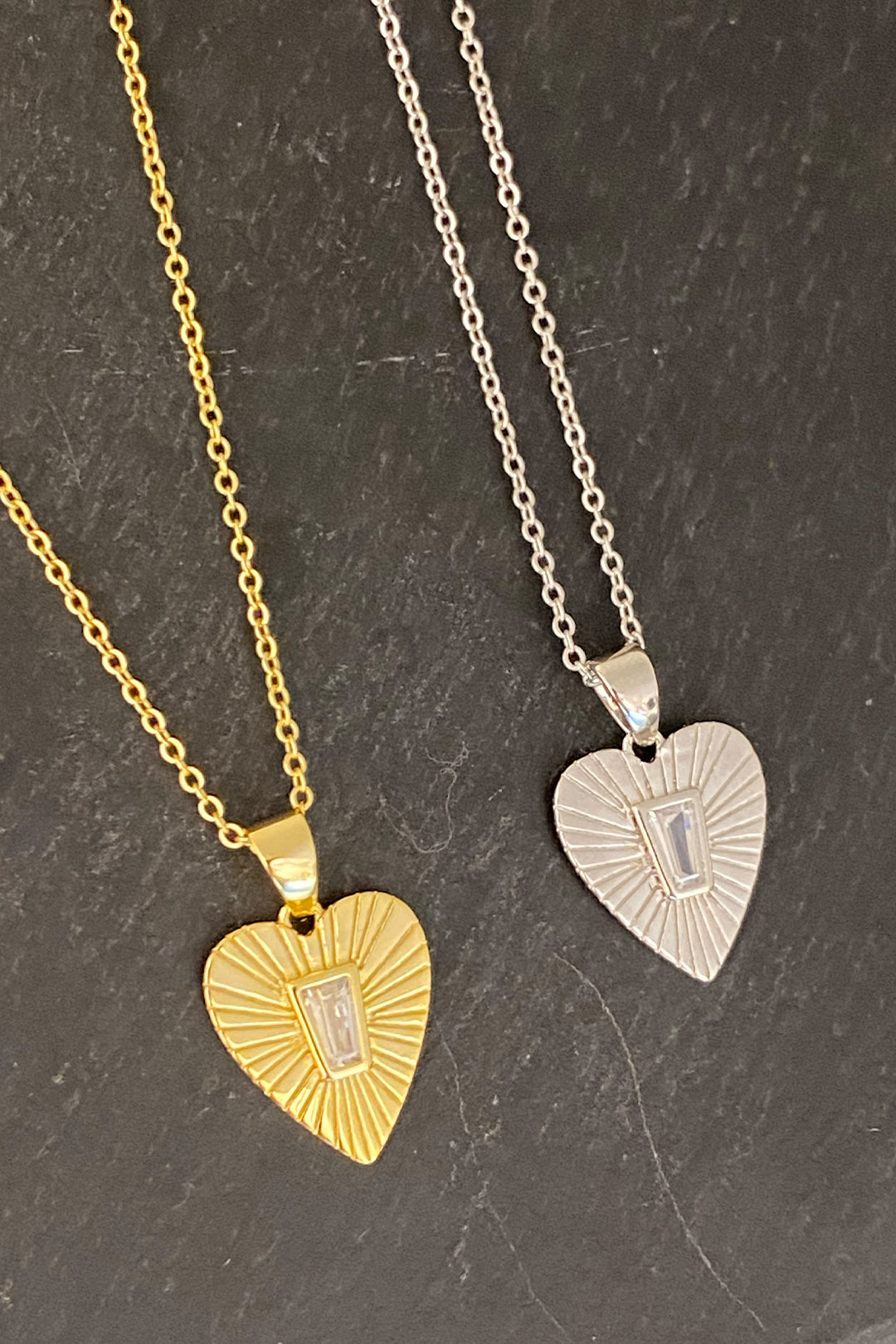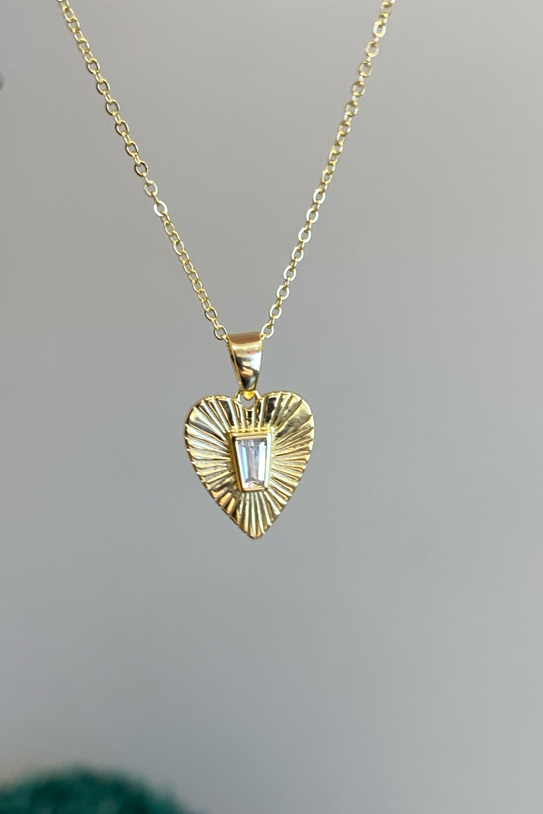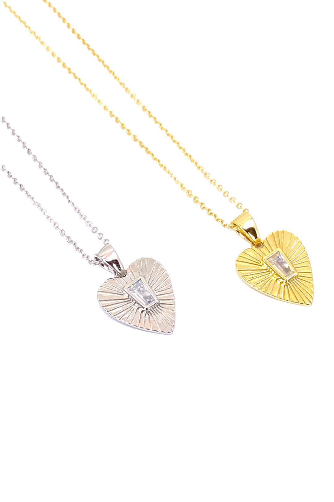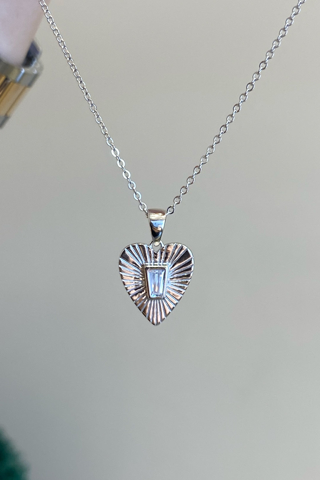 Ortası Baget Çarkıfelek Kalp Gümüş Kolye