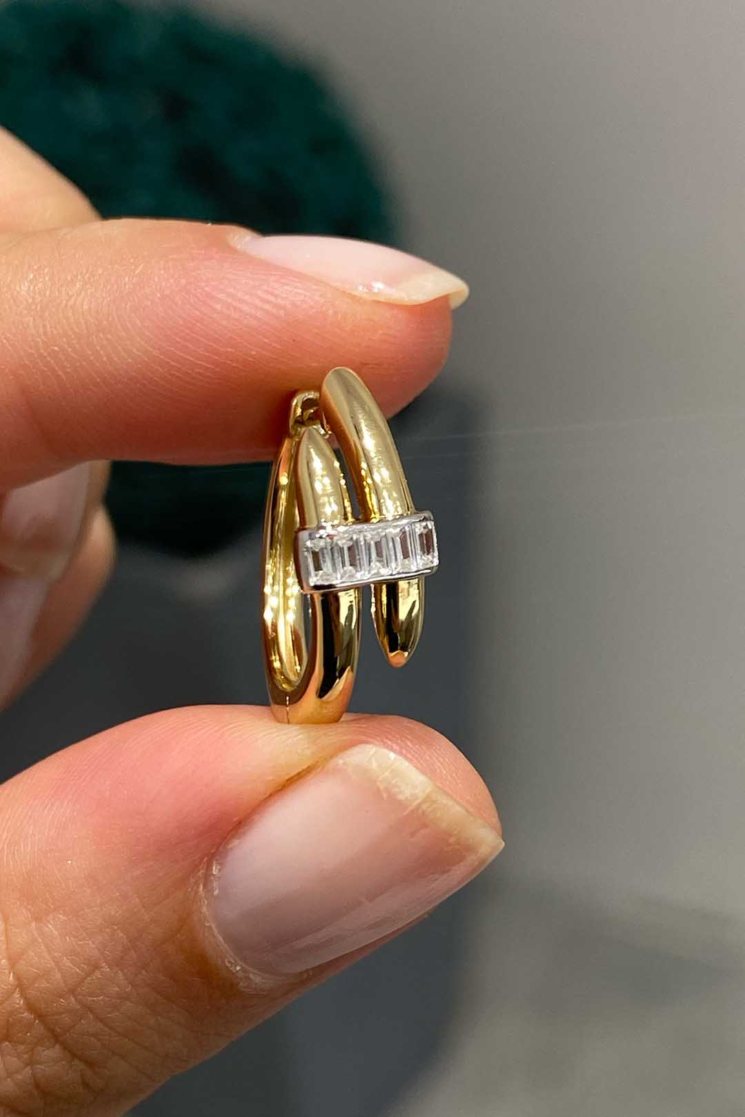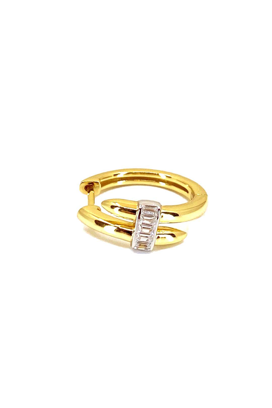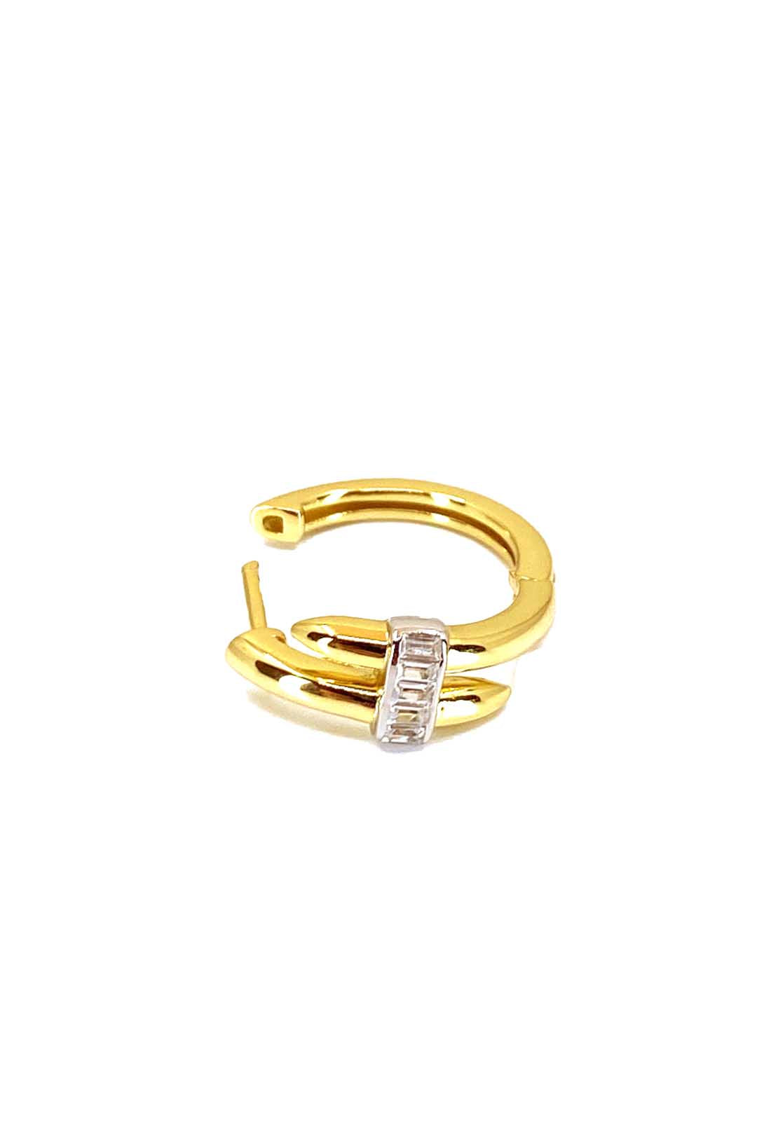 Ortası Beyaz Baget Vida Gümüş Halka Küpe