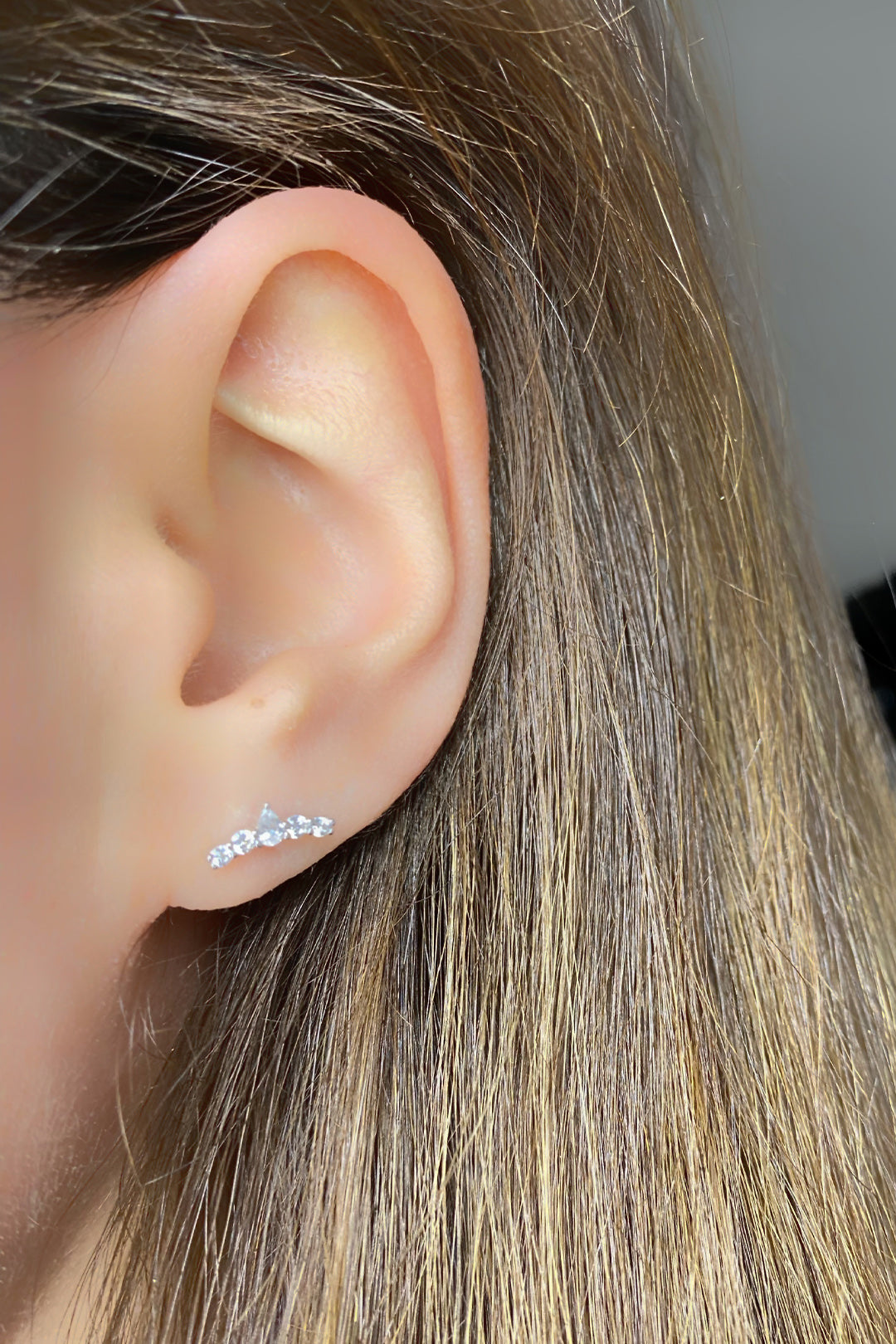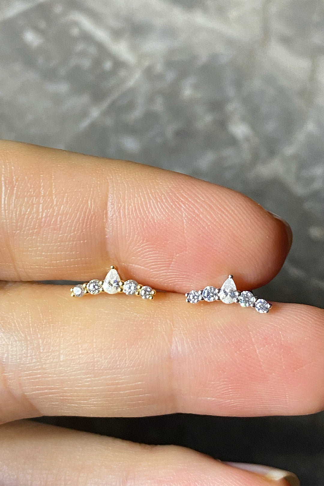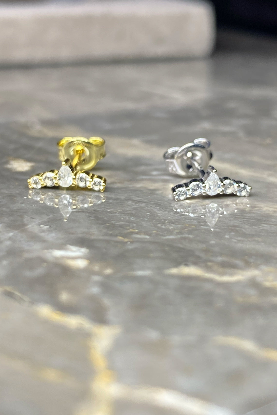 Ortası Damla Dört Yuvarlak Taş Yay Gümüş Çivili Küpe